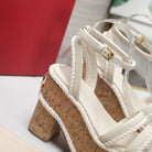 Valentino Garavani VLogo Summerblocks Wedge Sandals 115mm White Mix Brown Cowhide And Nylon Rope 821111