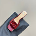 Vogo Signature High Shine Open Toe Sandals In Burgundy Glossy Lambskin 839829