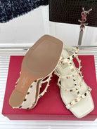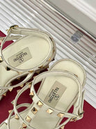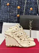 VT 25 Studded Wedge Sandals Beige Gold Calfskin 156079