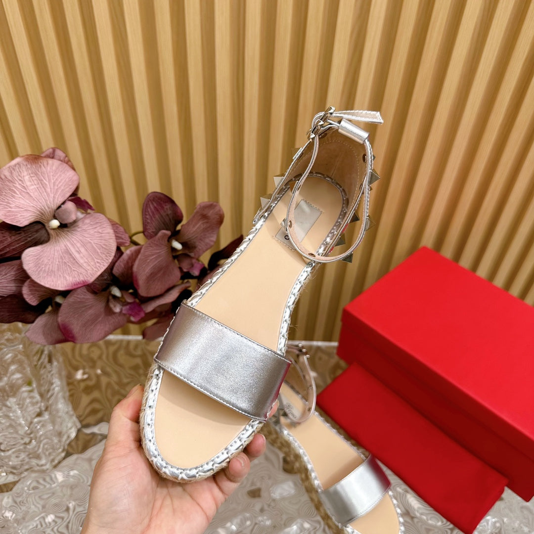 Rockstud Crisscross Espadrilles 80mm Sandal Wedges Brown