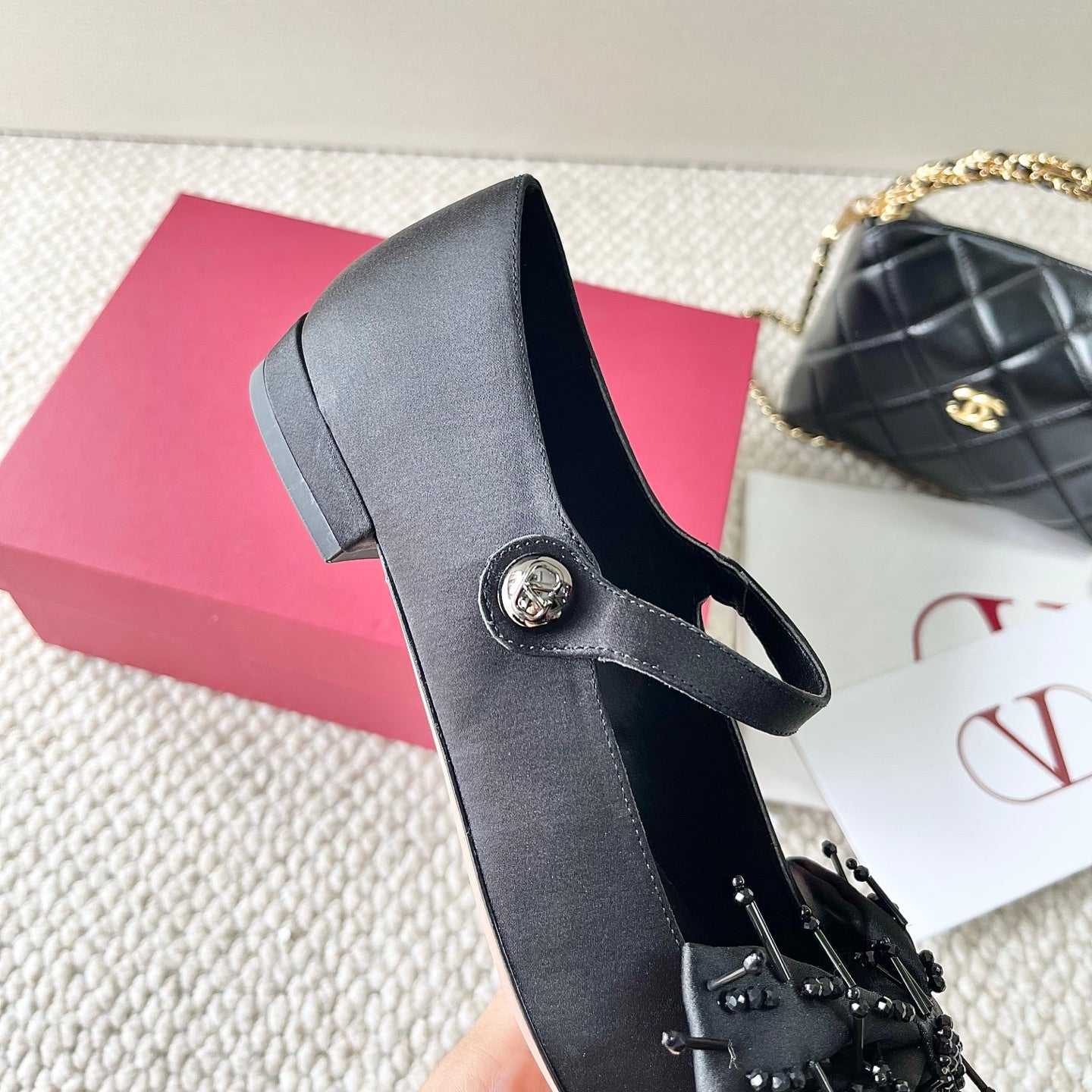 VT 25 Bow Diamond Marry Jane Flat Black Silk