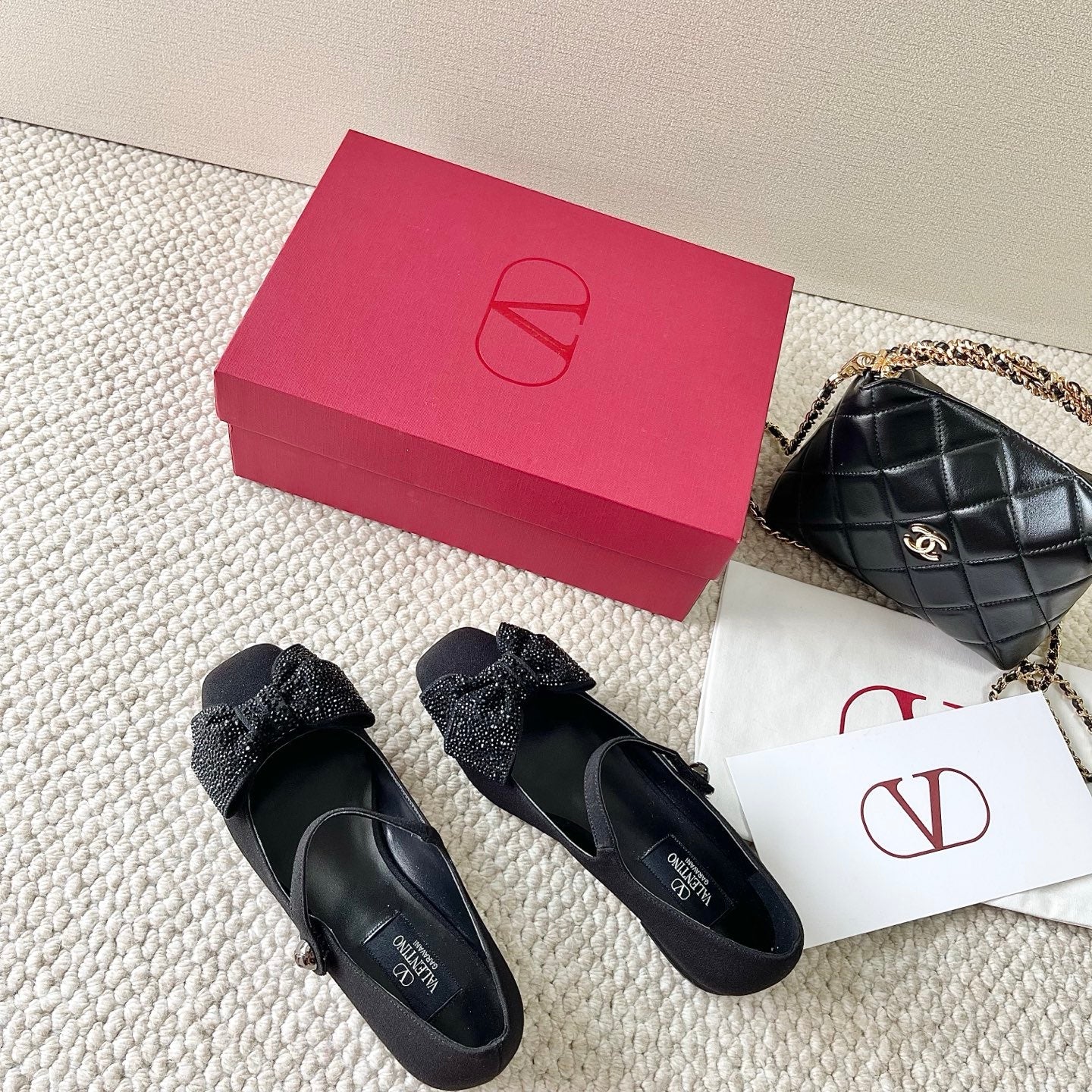 VT 2025 Quilted Leather Bow Ballerina Flats Black Sheepskin 286493
