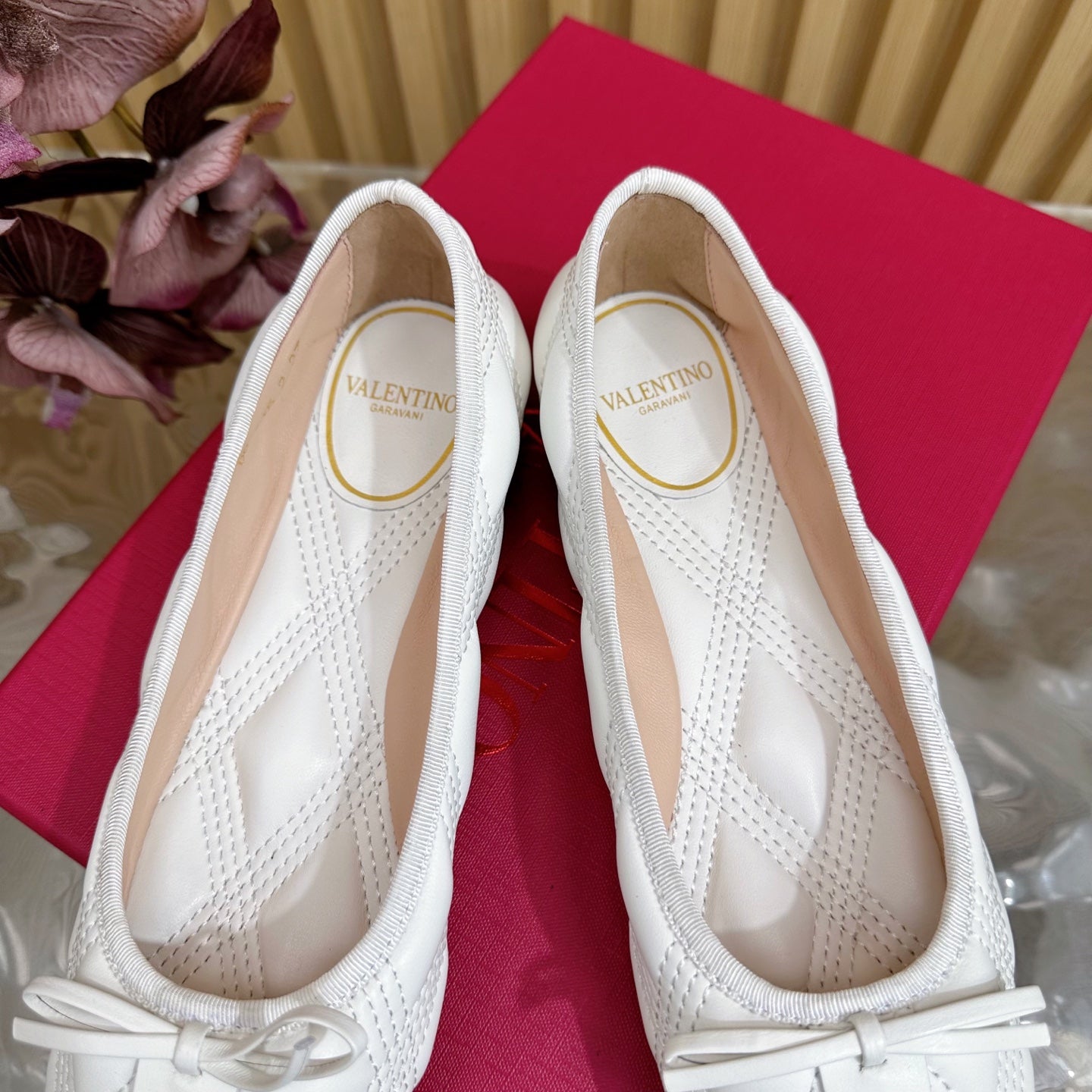 VT 2025 Quilted Leather Bow Ballerina Flats White Sheepskin 286491