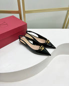 VLogo Slingback Ballerina 20mm In Glossy Black Cowhide 843651