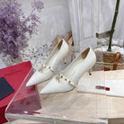 VT Rockstud Pumps White Sheepskin Leather