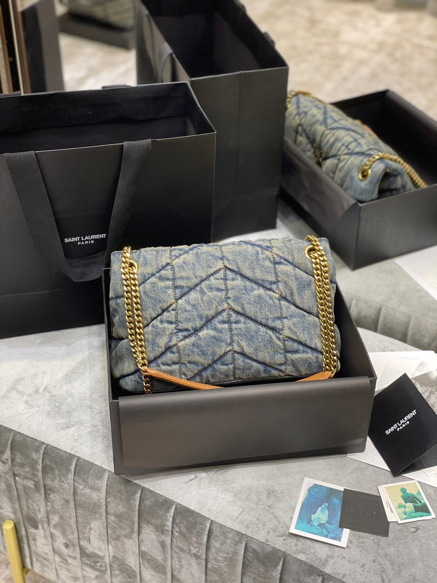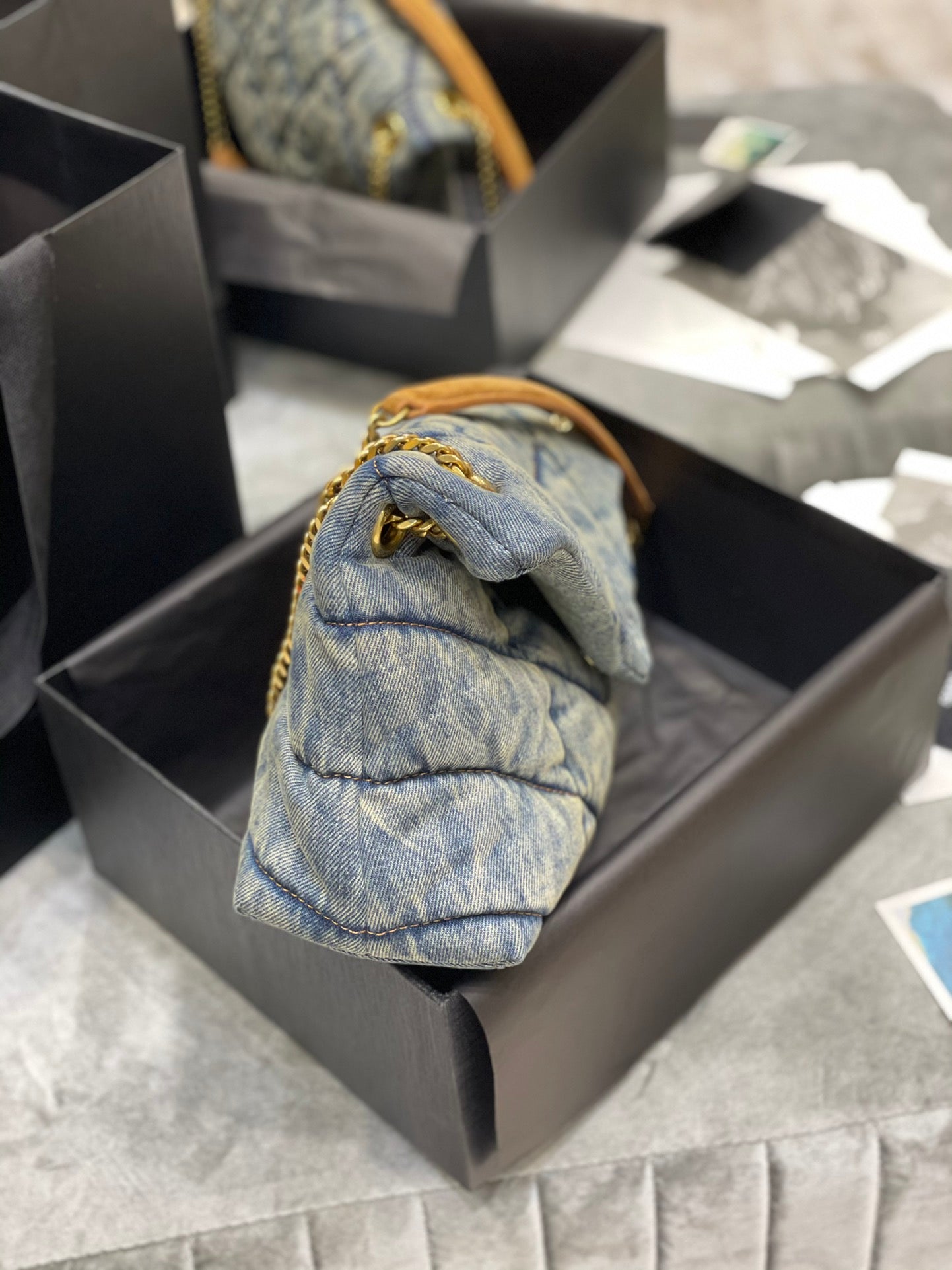 LOULOU PUFFER SMALL 29CM RODEO BLUE SUEDE DENIM