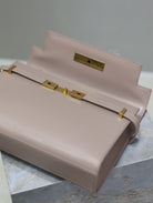 MANHATTAN MEDIUM 29 IN DARK BEIGE SMOOTH CALFSKIN GOLD BUCKLE