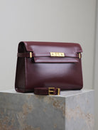 MANHATTAN MEDIUM 29 IN WINE RED SMOOTH CALFSKIN GOLD BUCKLE