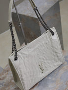 NIKI SHOPPING BAG 33 IN WHITE CRUMPLED CALFSKIN
