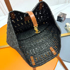 YSL PANIER BAG 55CM BLACK CROCHET RAFFIA TAN CALFSKIN