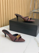 SL CHAIN ATTACH HEELED MULES BROWN DENIM