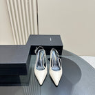 SL TRAPEZE HEEL SLINGBACK PUMP WHITE CALFSKIN