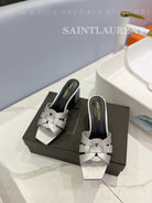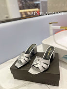 SL TRIBUTE MULES SILVER CALFSKIN