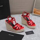 SL TRIBUTE WEDGE SANDALS CRIMSON POLISHED CALFSKIN