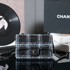 24K Flap Bag 20cm Blue Black Stripe Tweed