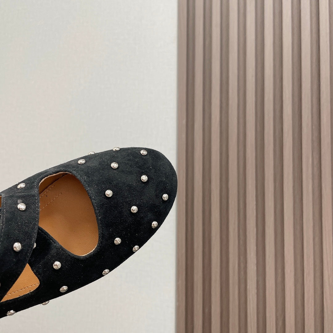Alaia 2025 Criss Cross With Stud Ballet Flats Black Suede 293205