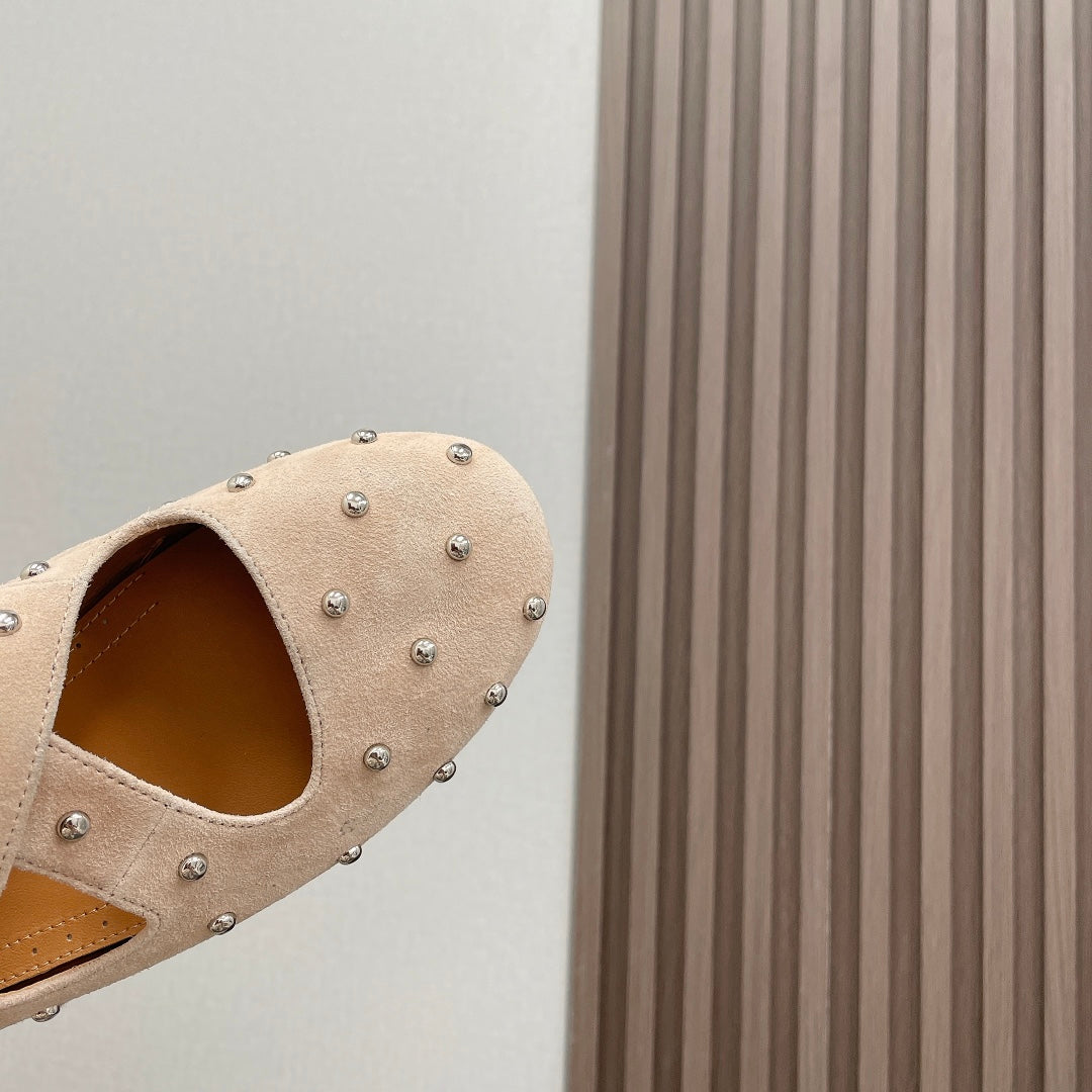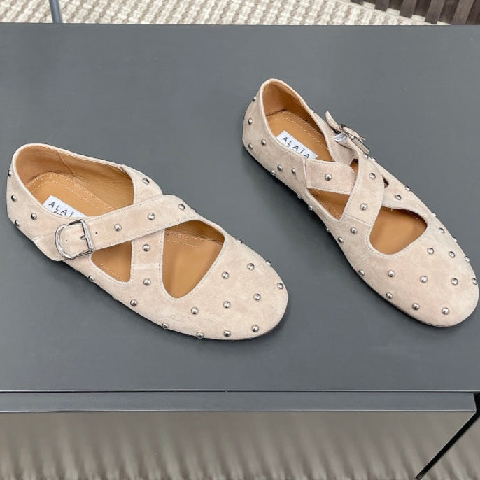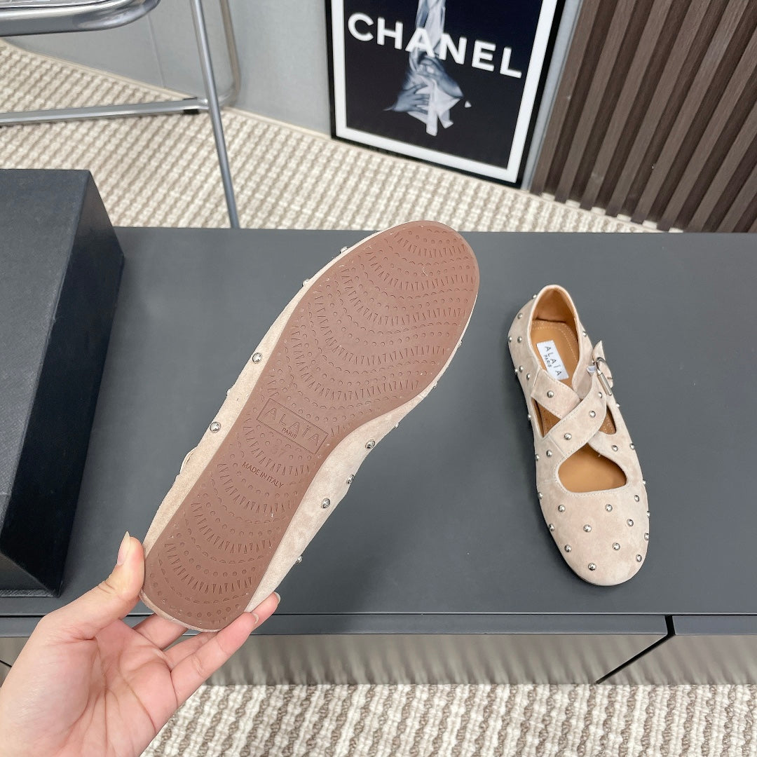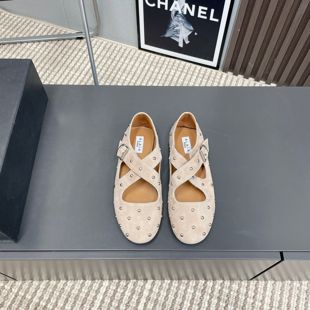 Alaia 2025 Criss Cross With Stud Ballet Flats Nude Suede 293206