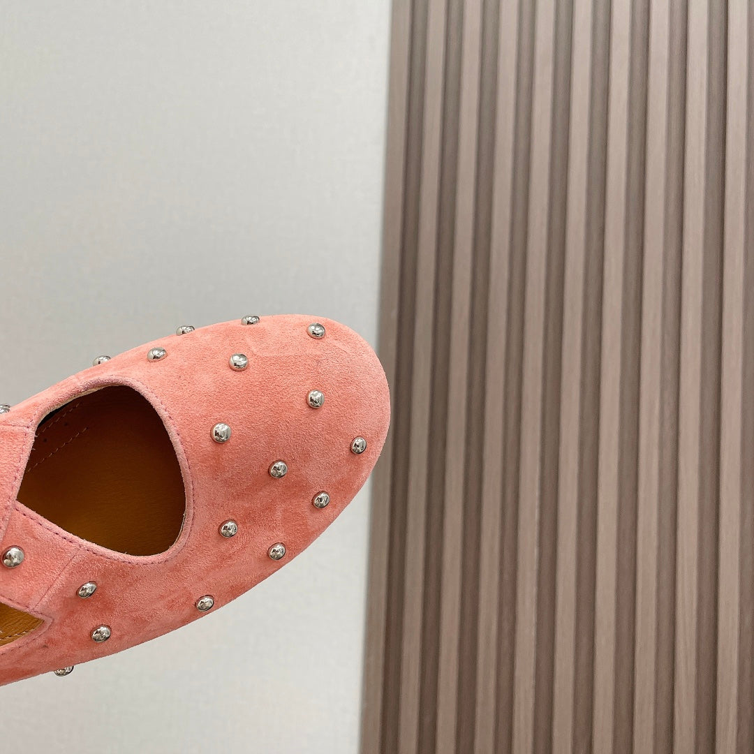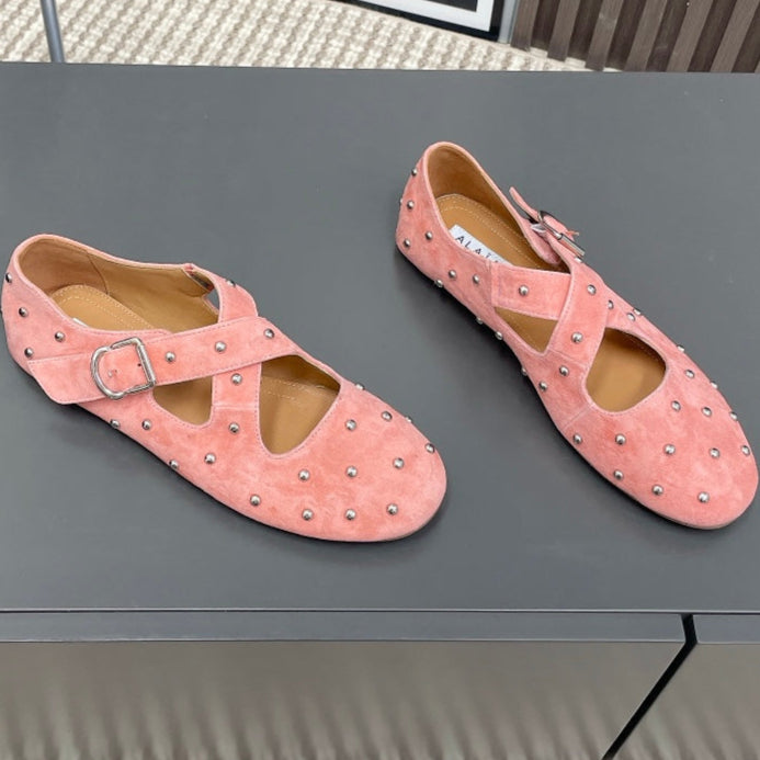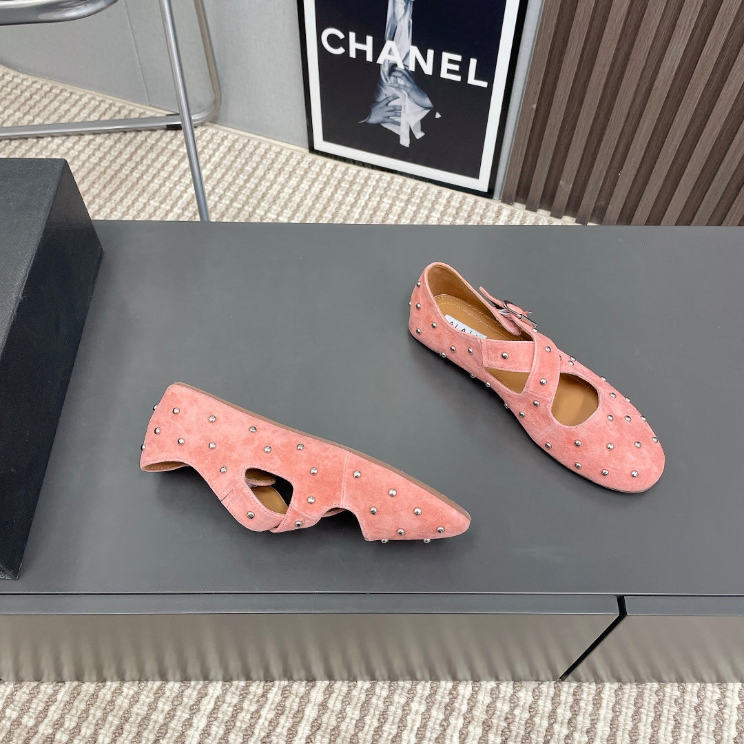 Alaia 2025 Criss Cross With Stud Ballet Flats Pink Suede 293216
