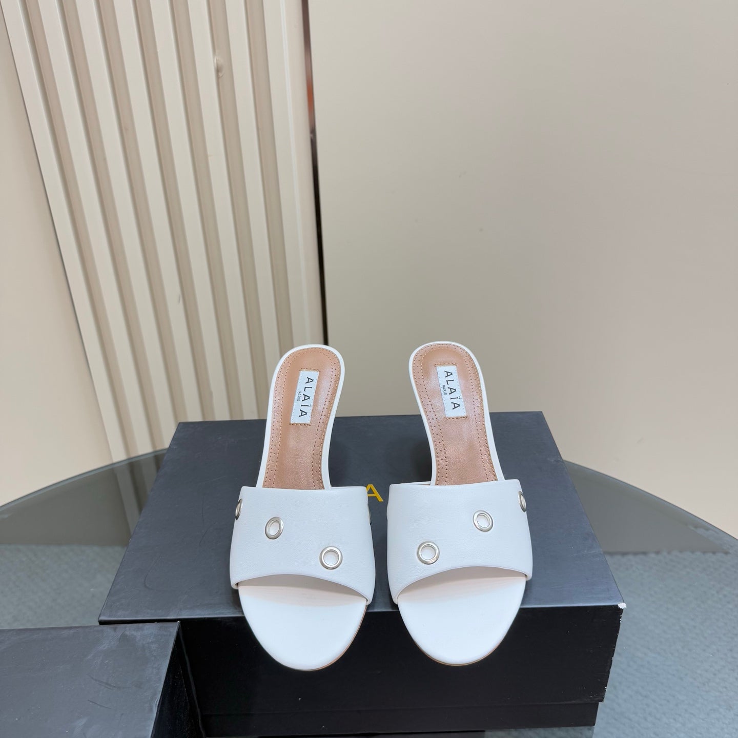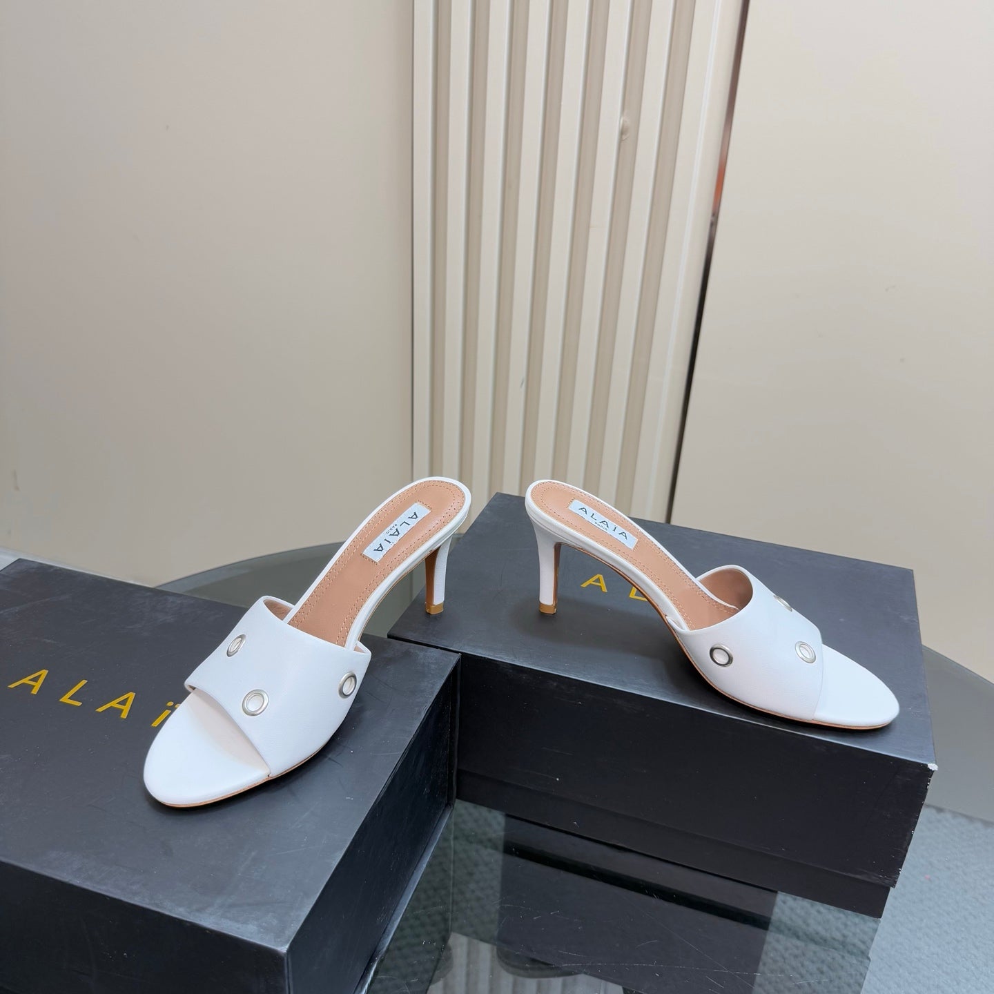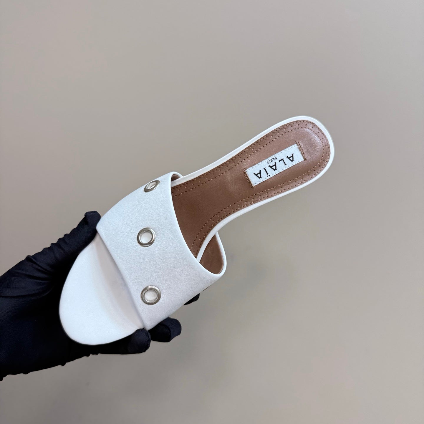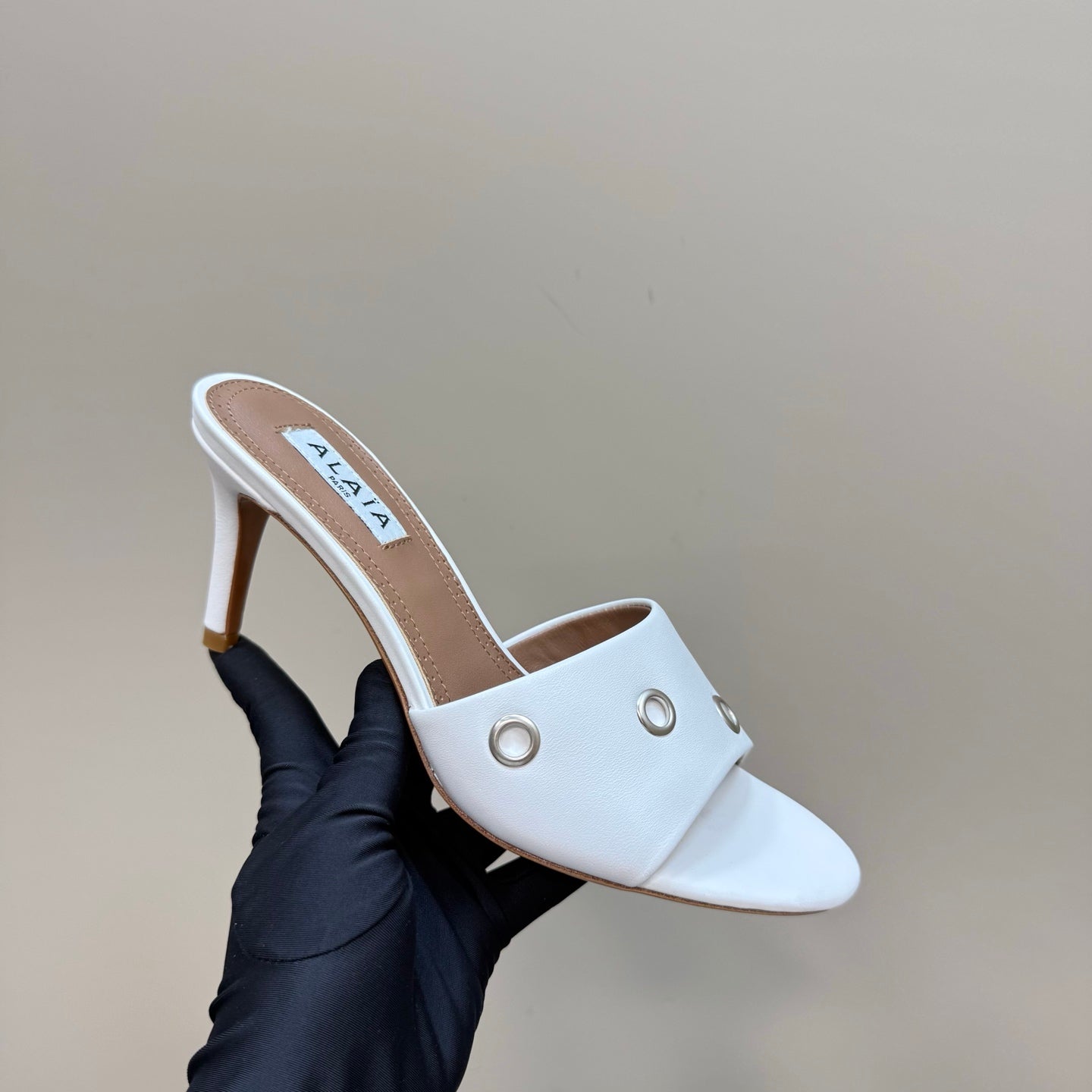Alaia 2025 Oeillets Embellished Leather Sandals White Lambskin 299667