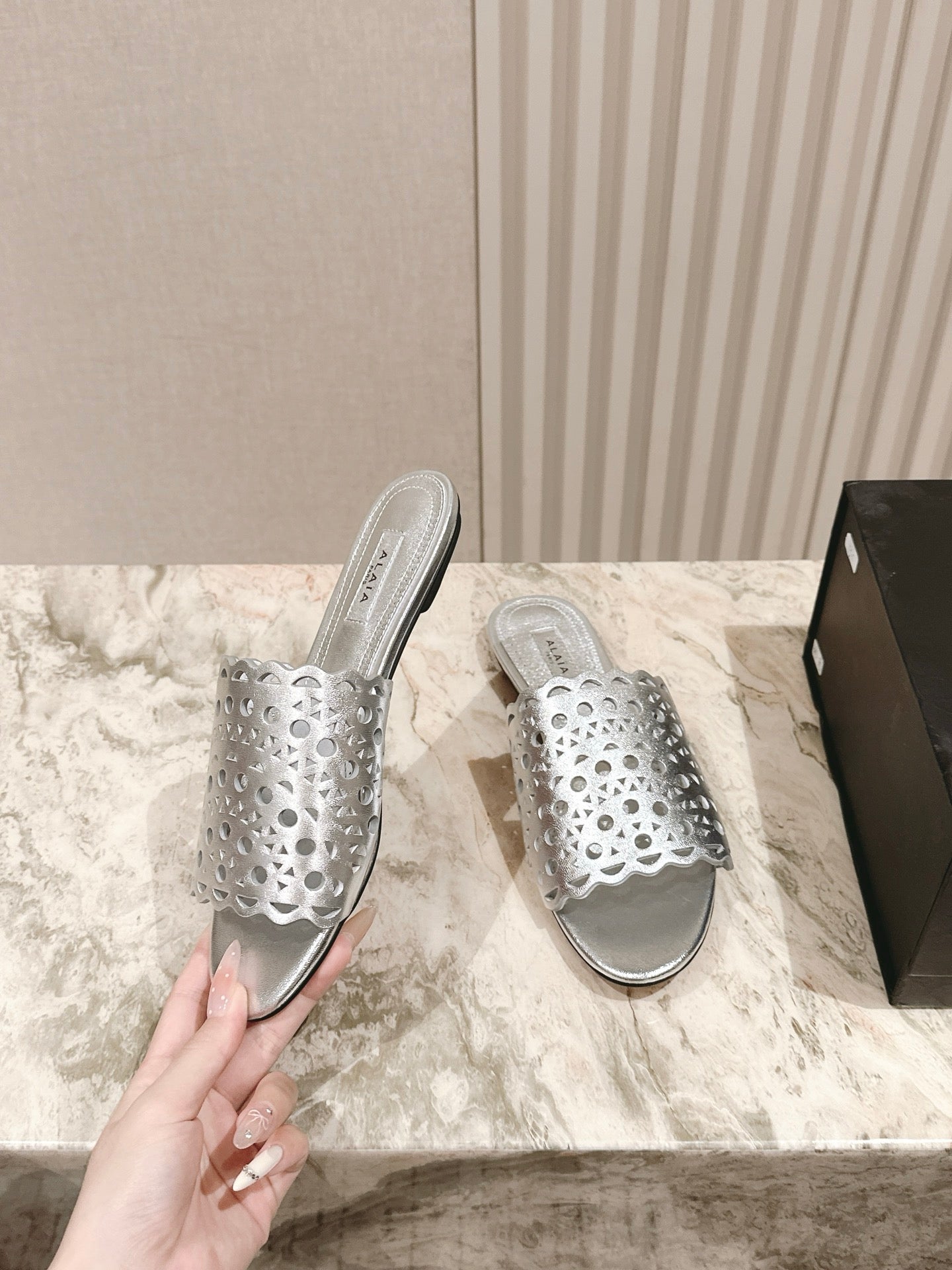 Alaia 2025 Vienne Slippers Silver Lambskin 293656