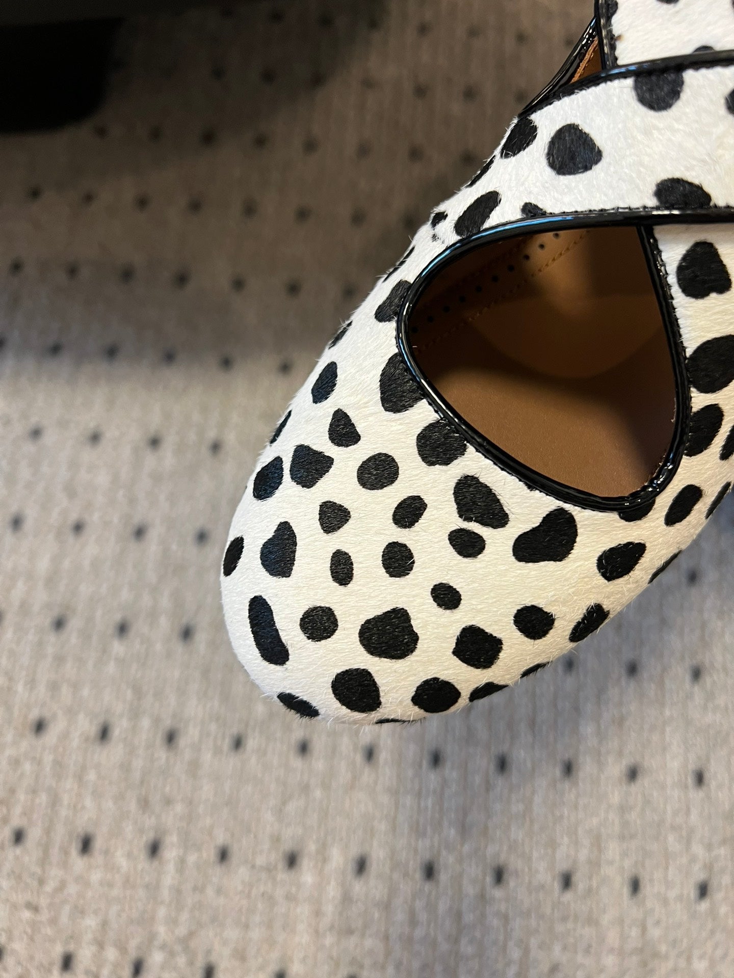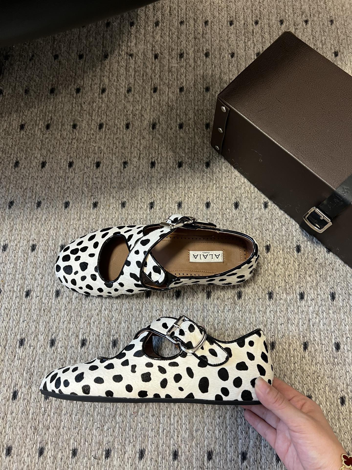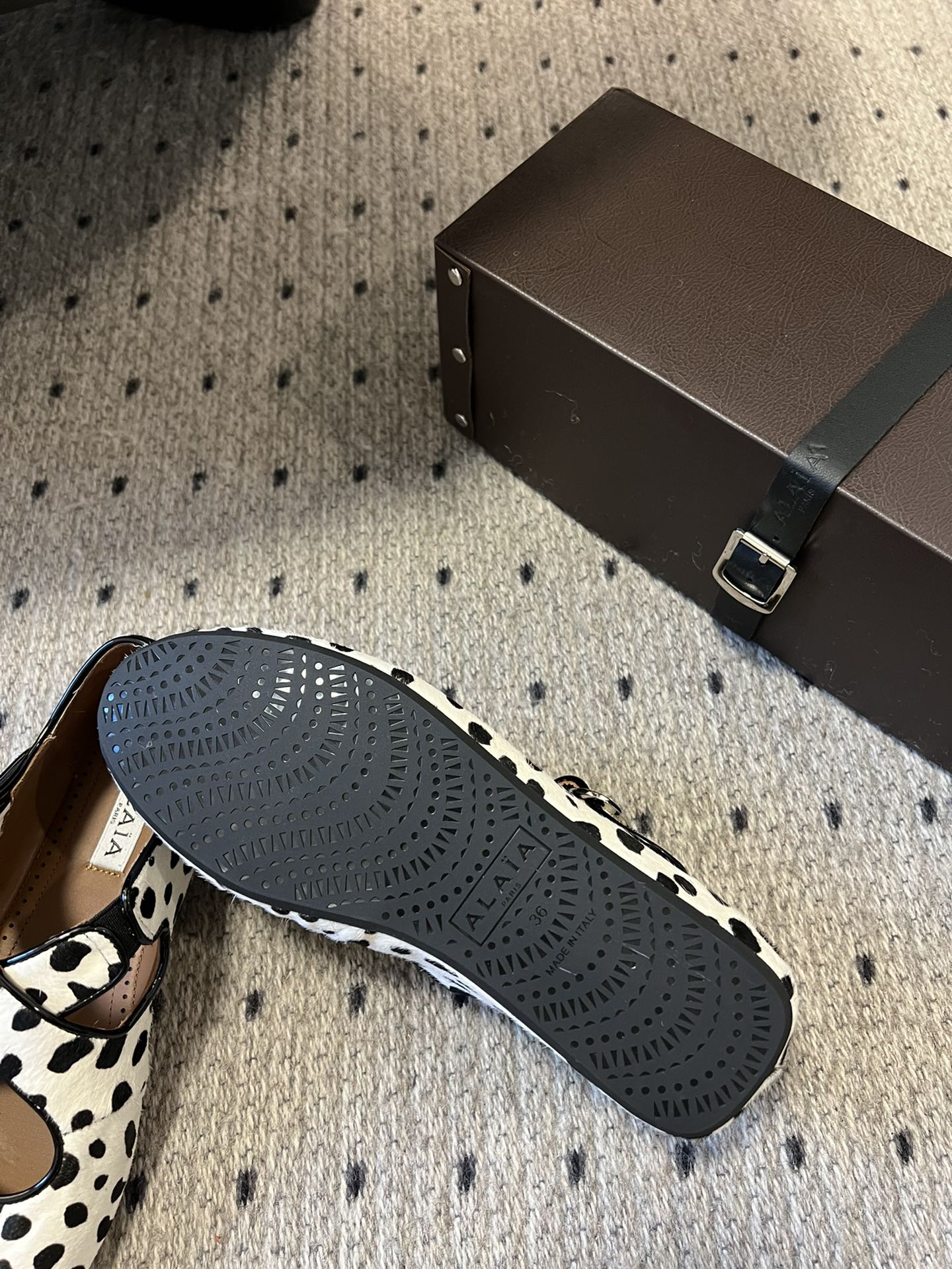 Alaia 25 Criss Cross With Stud Ballet Flats Black White Suede Sheepskin 303694