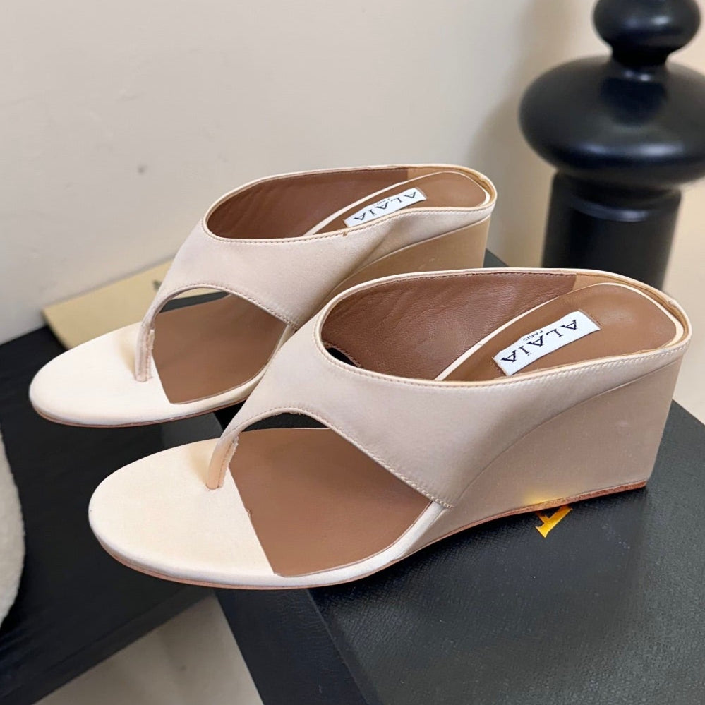 Alaia 25 Cube Thong Mules Nude Satin Sheepskin 297037