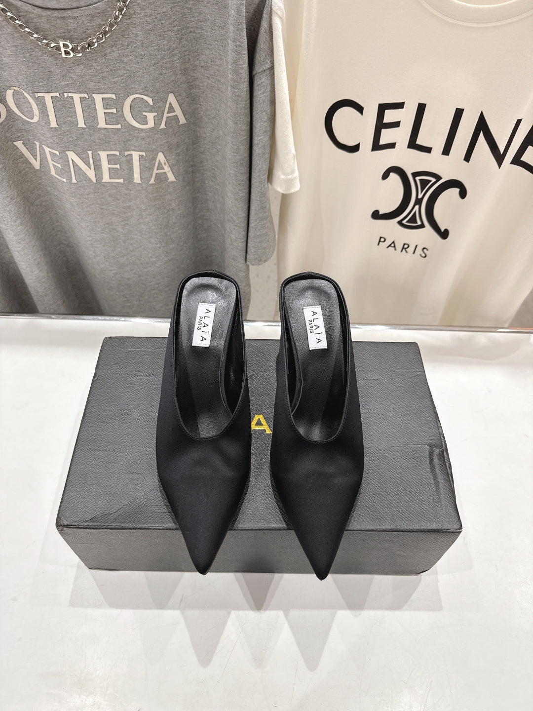 Alaia 25 Cube Wedge Mules Black Silk Sheepskin 300084