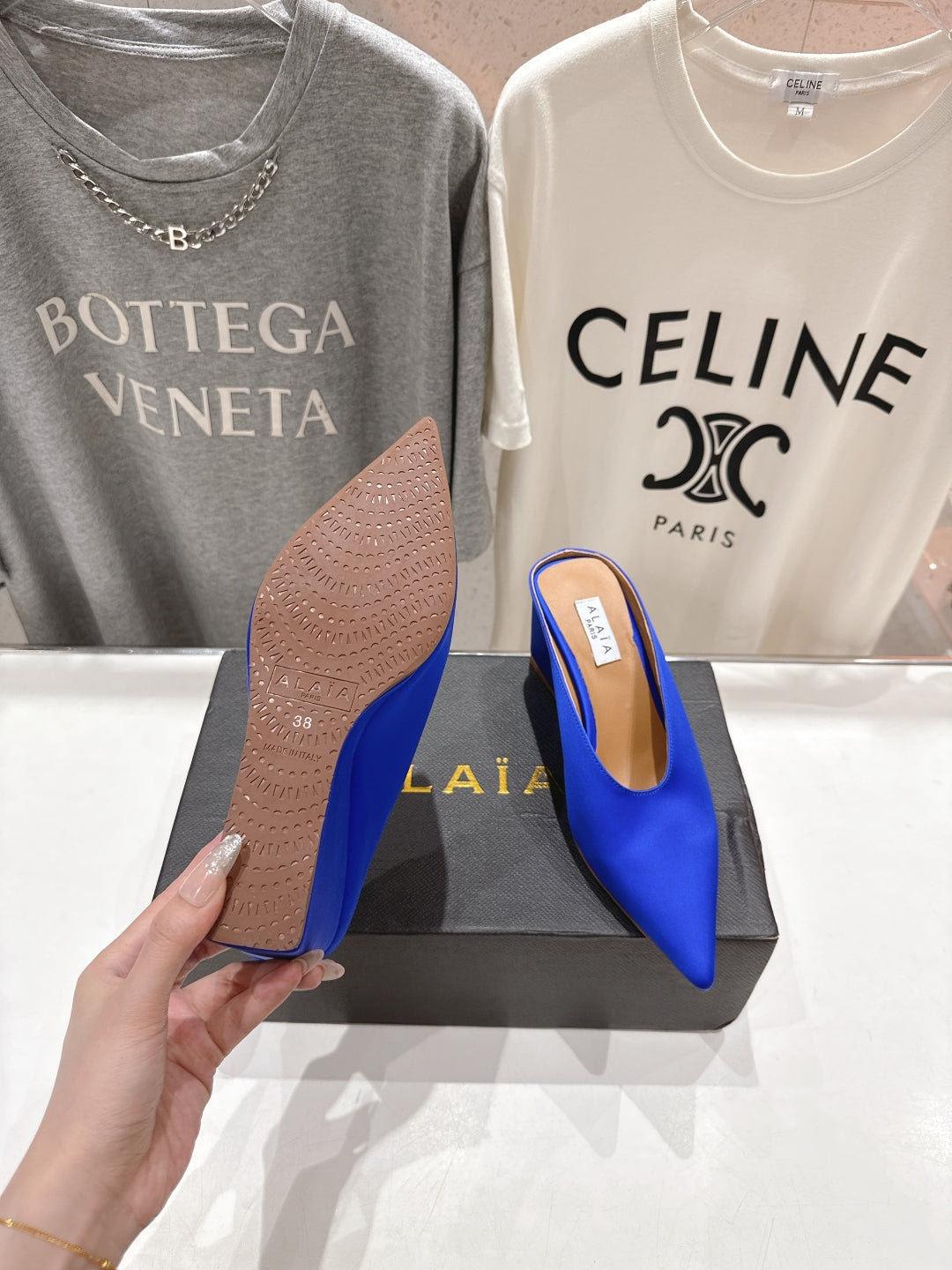 Alaia 25 Cube Wedge Mules Blue Silk Sheepskin 300081