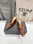 Alaia 25 Cube Wedge Mules Brown Silk Sheepskin 300083