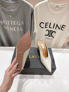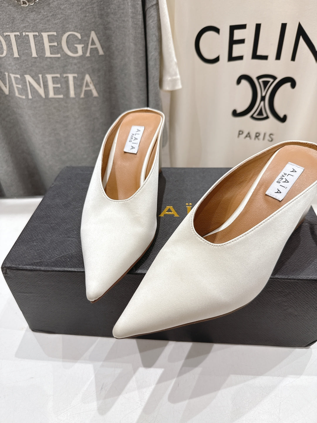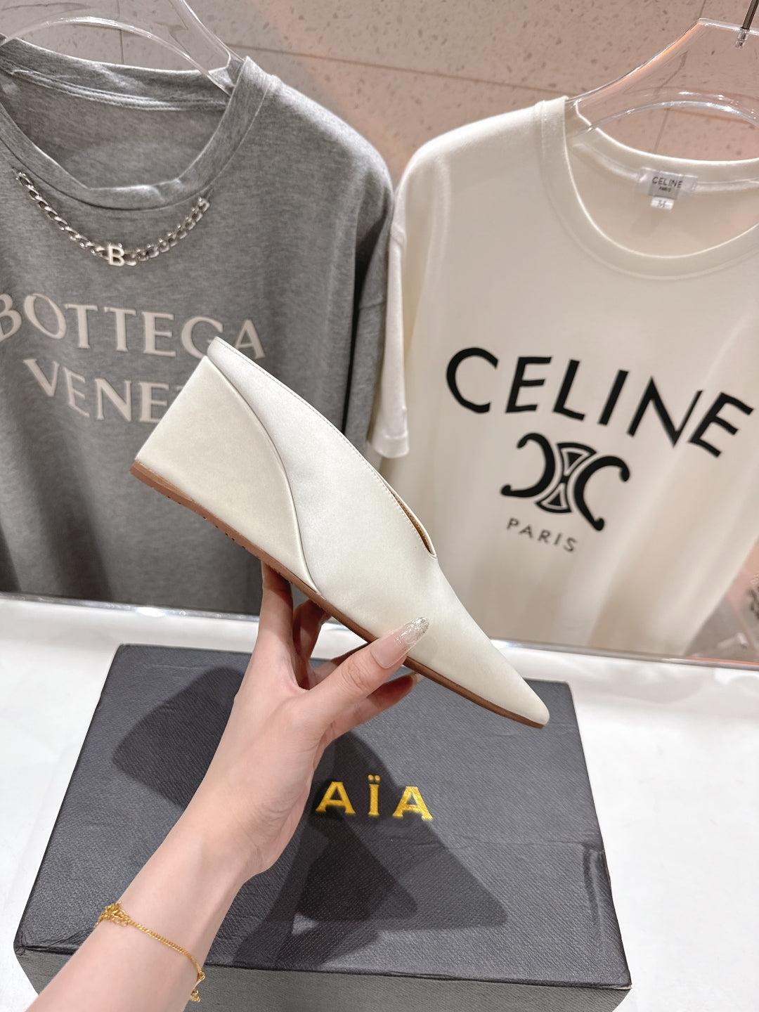 Alaia 25 Cube Wedge Mules Ivory Silk Sheepskin 300080
