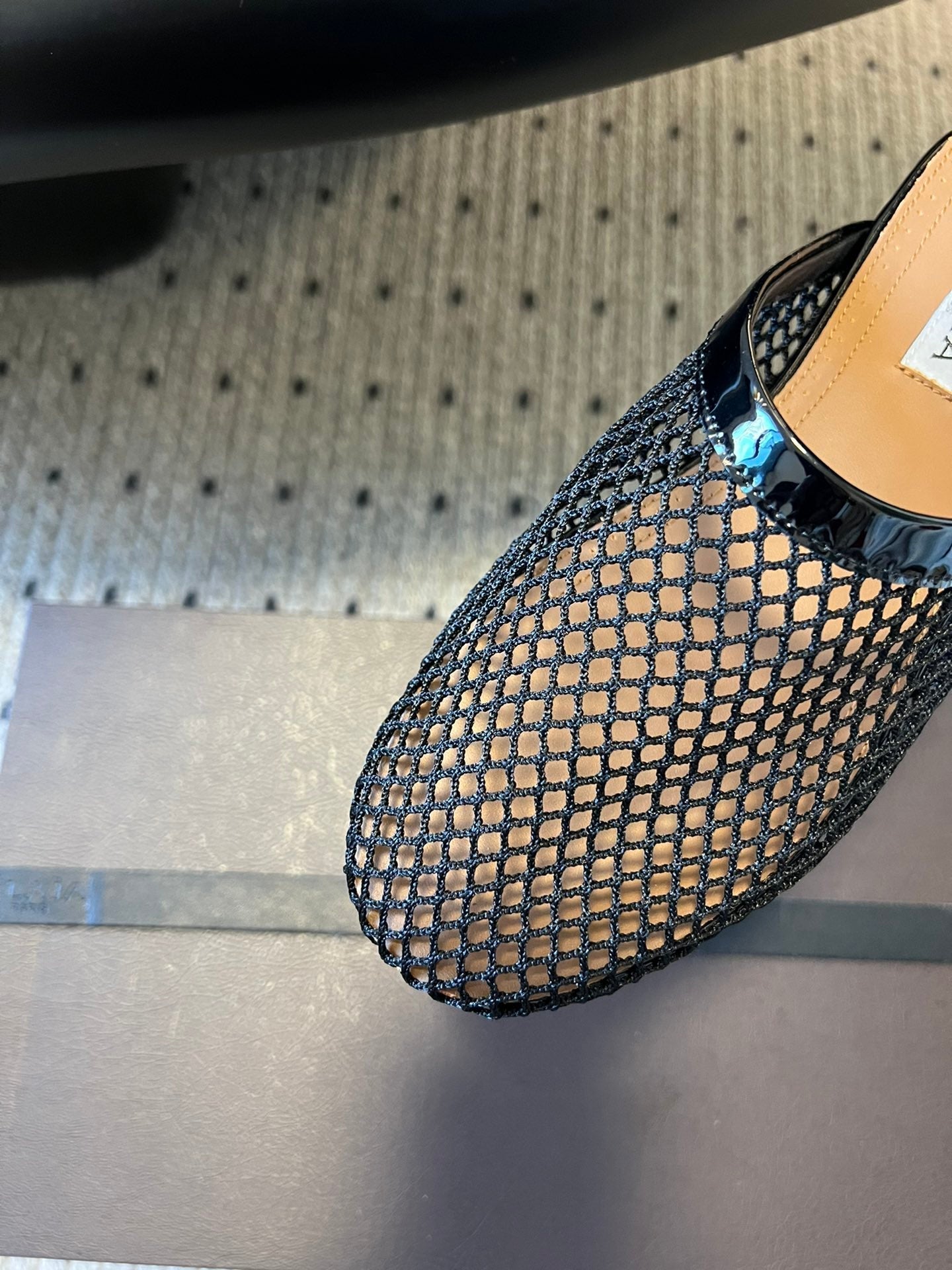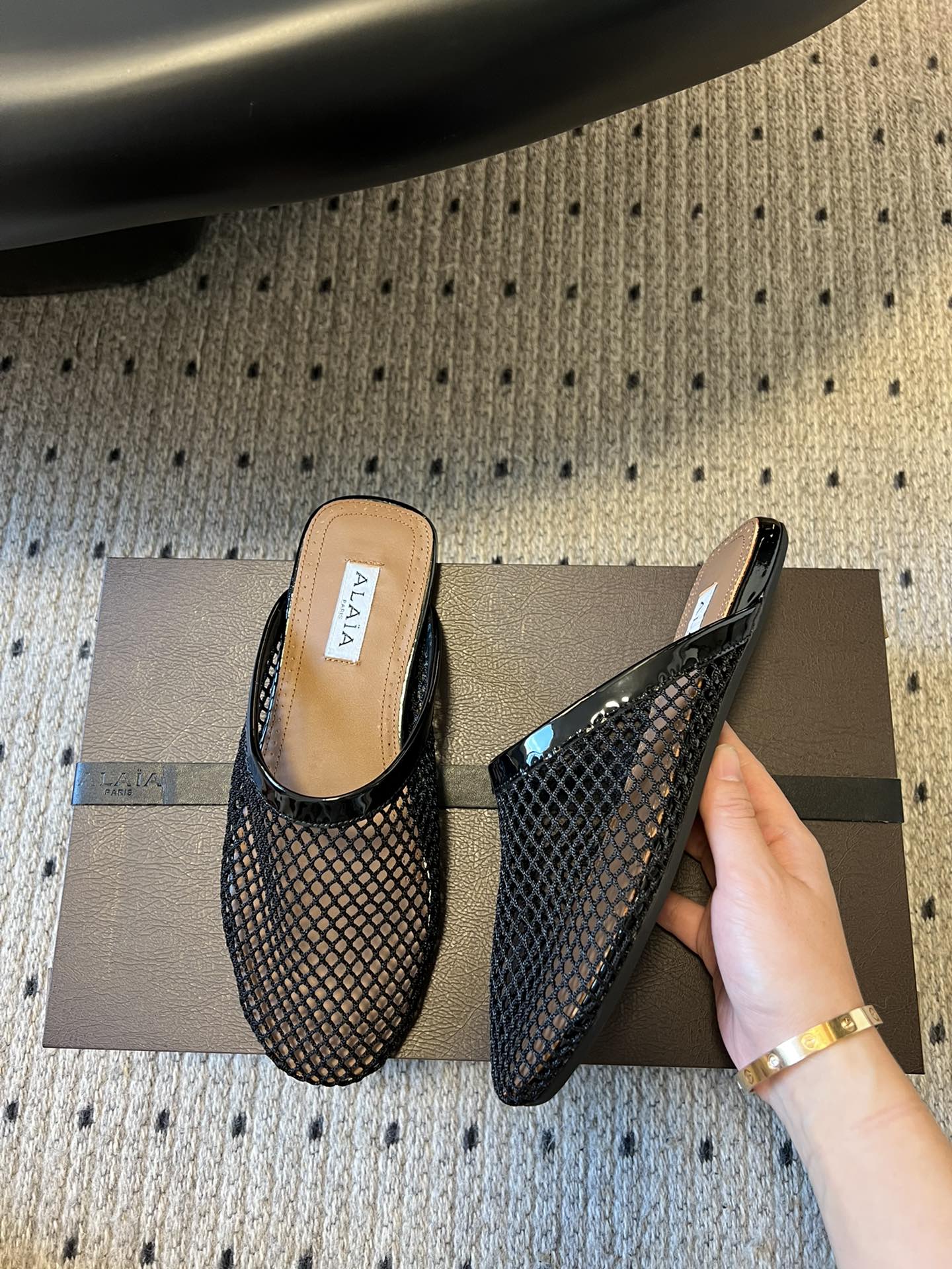 Alaia 25 Fishnet Flat Mules Black Lampskin 303685