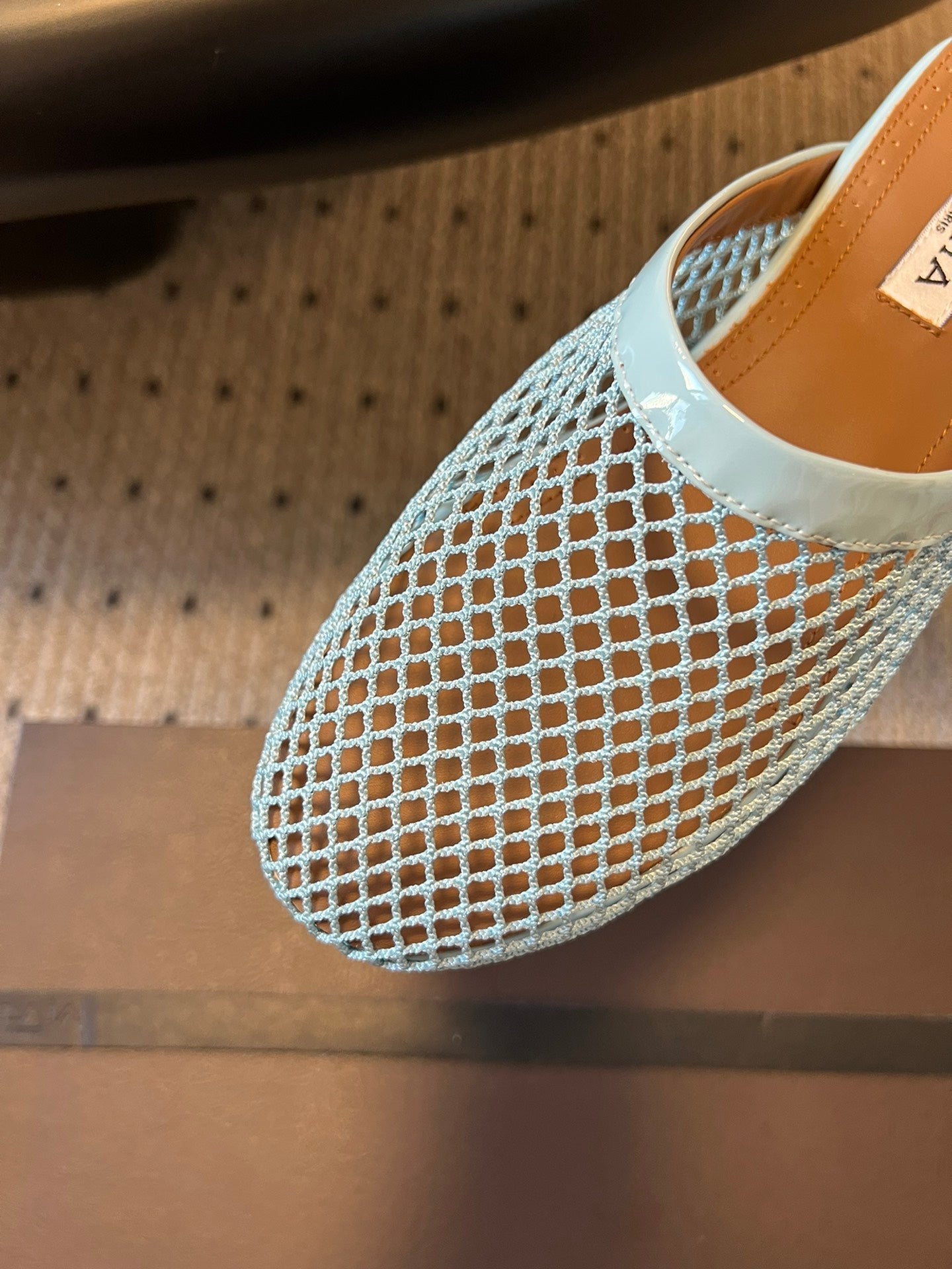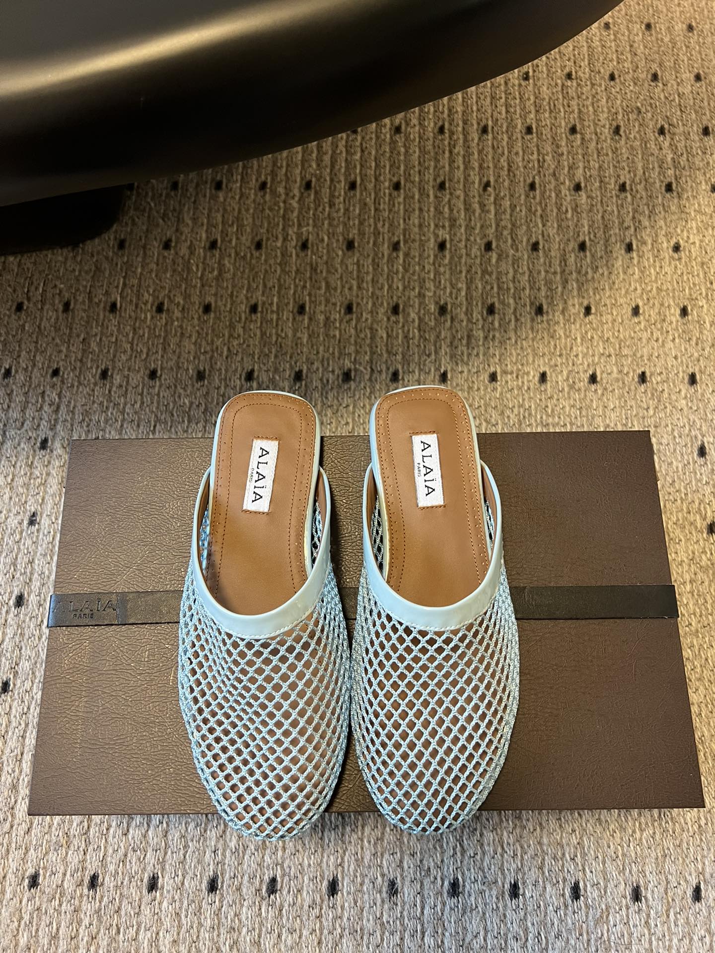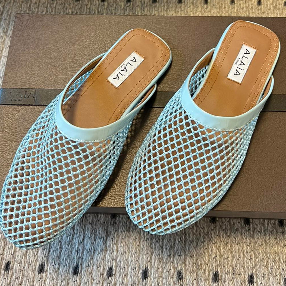 Alaia 25 Fishnet Flat Mules Lagoon Green Lampskin 303684