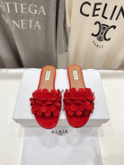 Alaia 25 Flower Slippers Red Sheepskin 302675