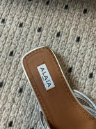 Alaia 25 Infradito Fishnet Flat Mules Silver Lampskin 303712