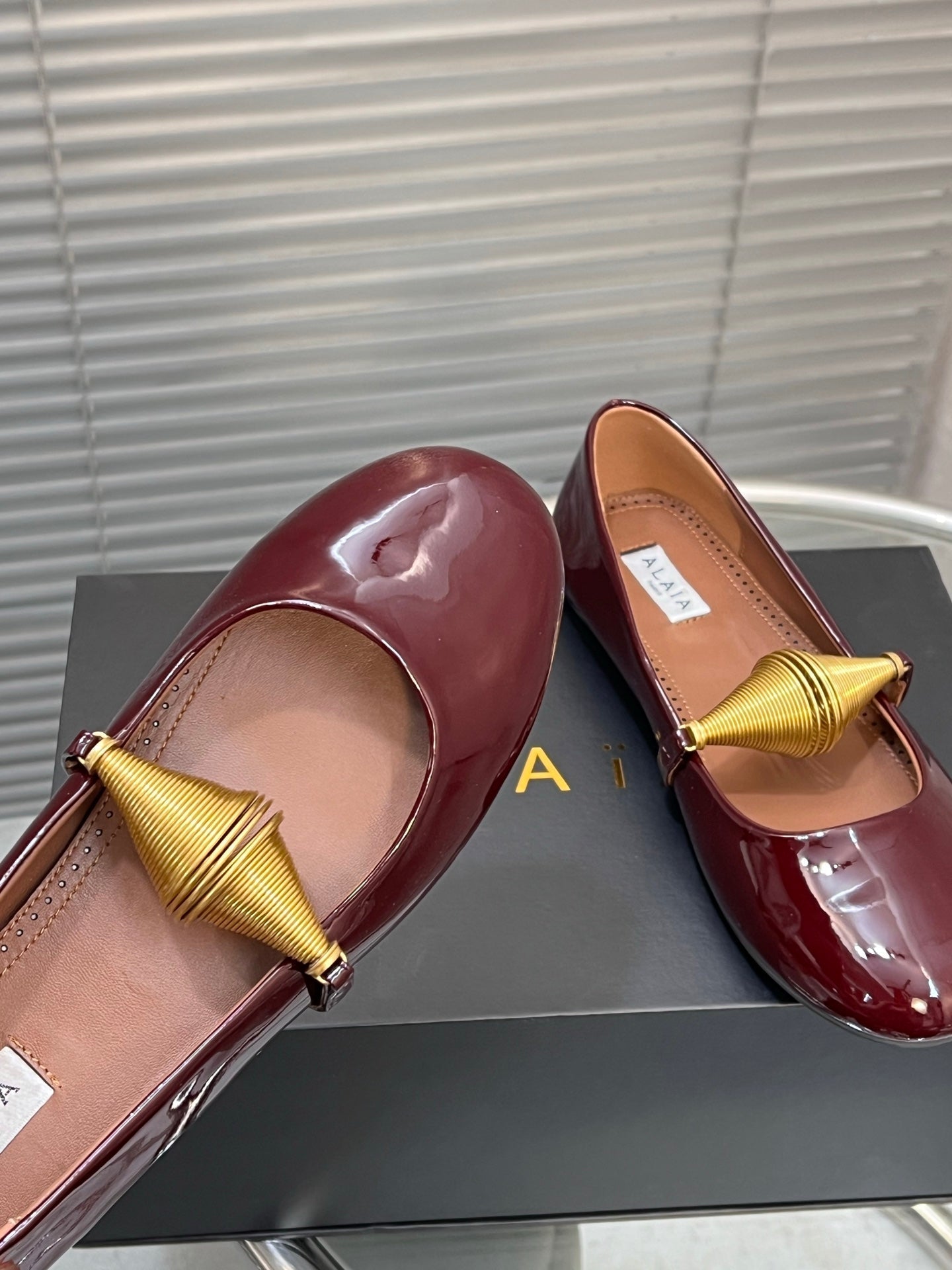 Alaia 25 Jewel Patent Leather Ballet Flats Ruby Red Lambskin 300013