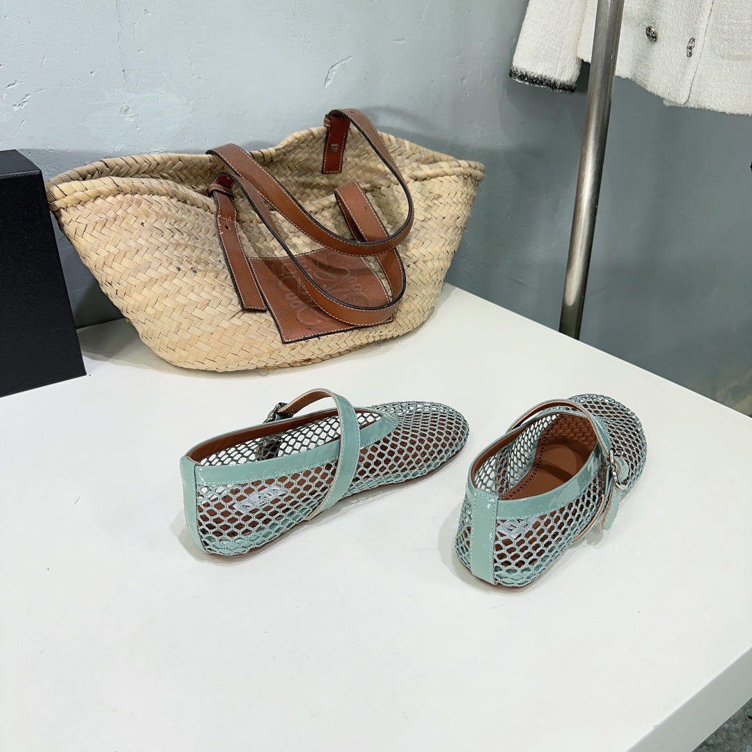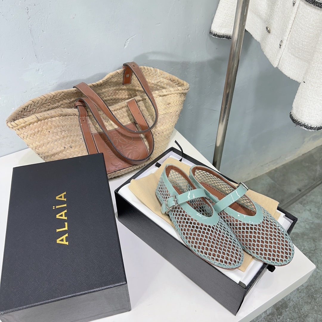 Alaia 25 Laminated Fishnet Ballet Flats Lagoon Green Lambskin 677172