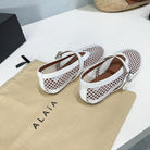 Alaia 25 Laminated Fishnet Ballet Flats White Lambskin 576442