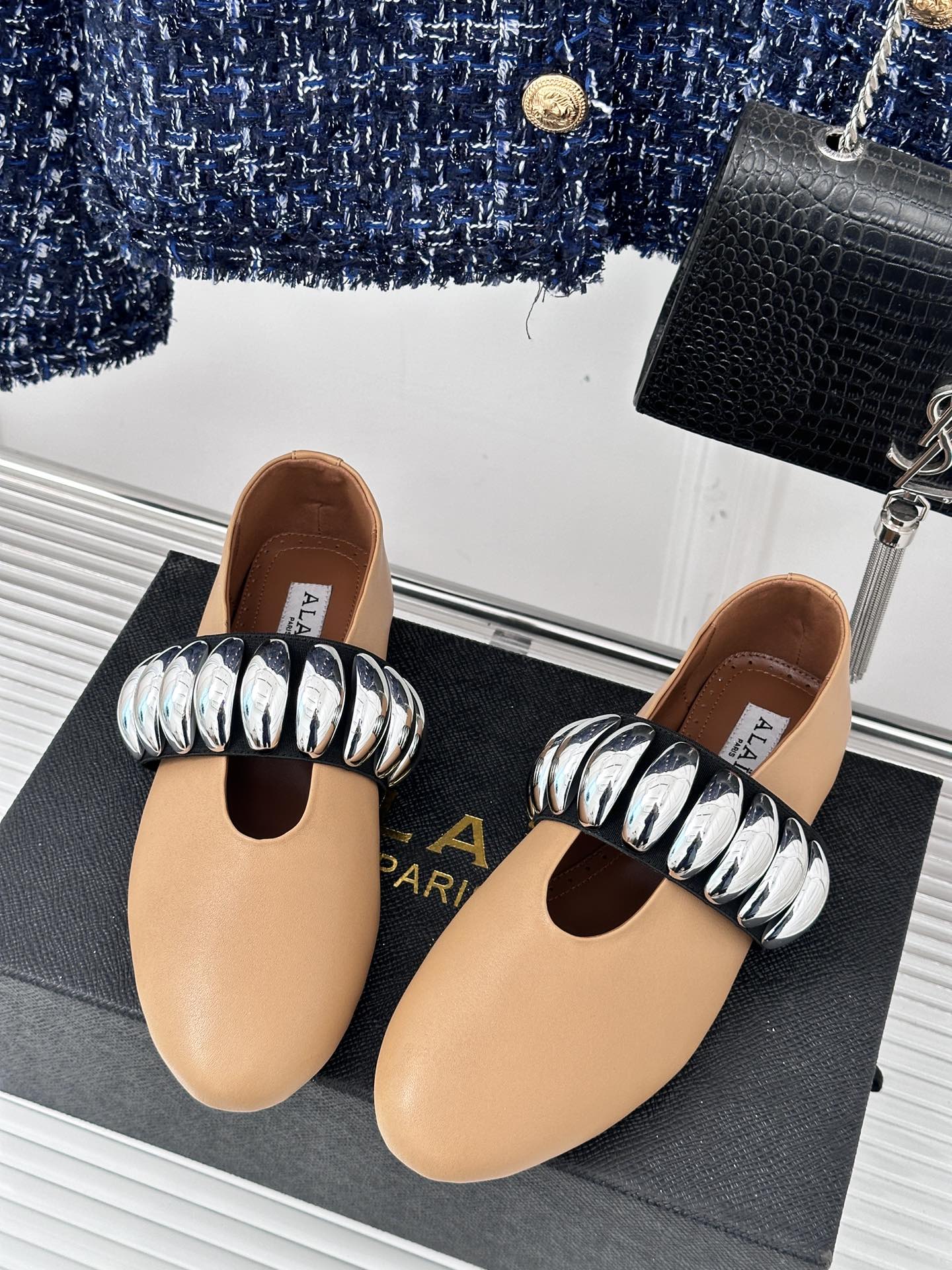 Alaia 25 Mary Jane Jewel Ballet Flats Brown Calfskin 293247