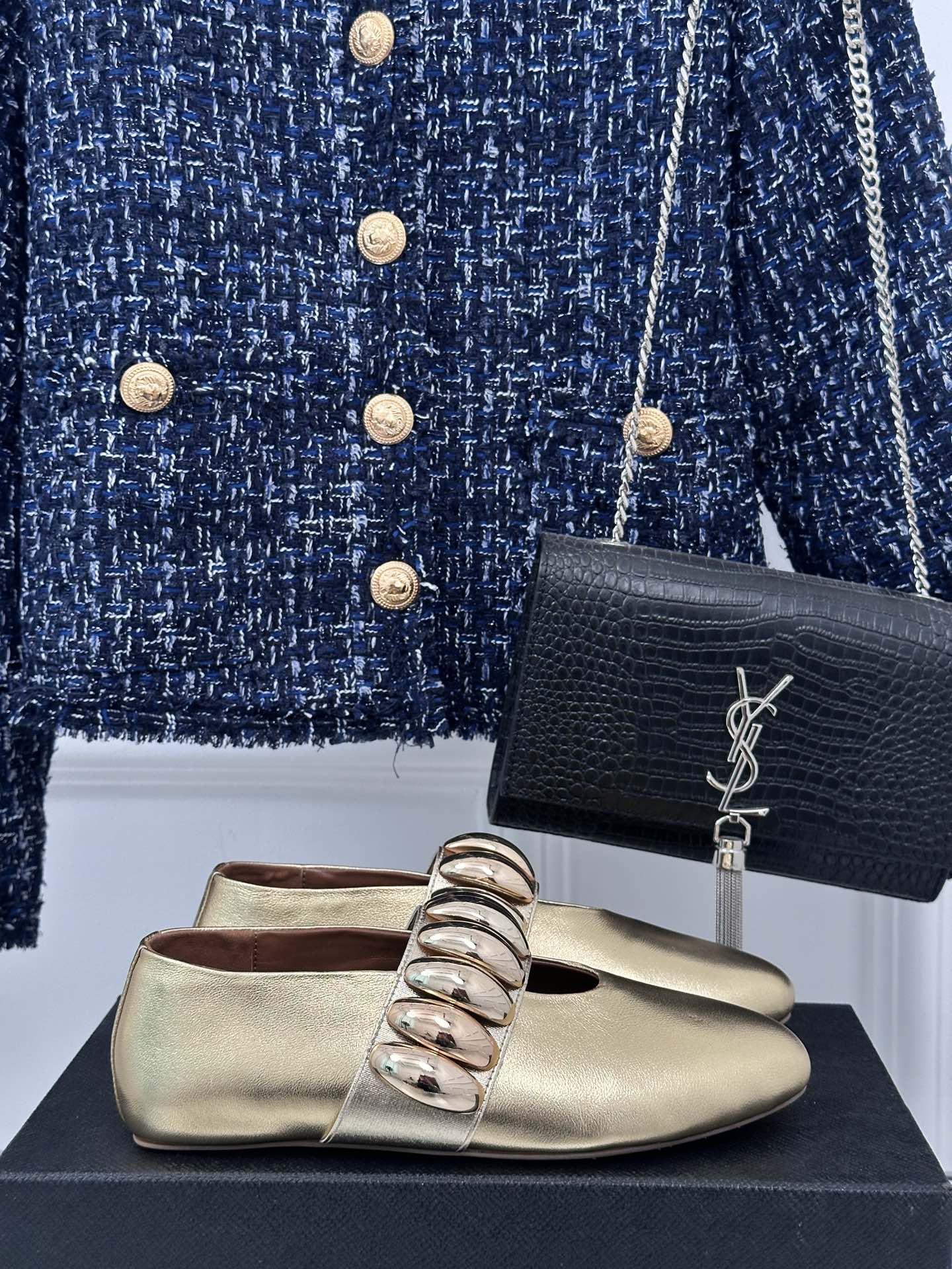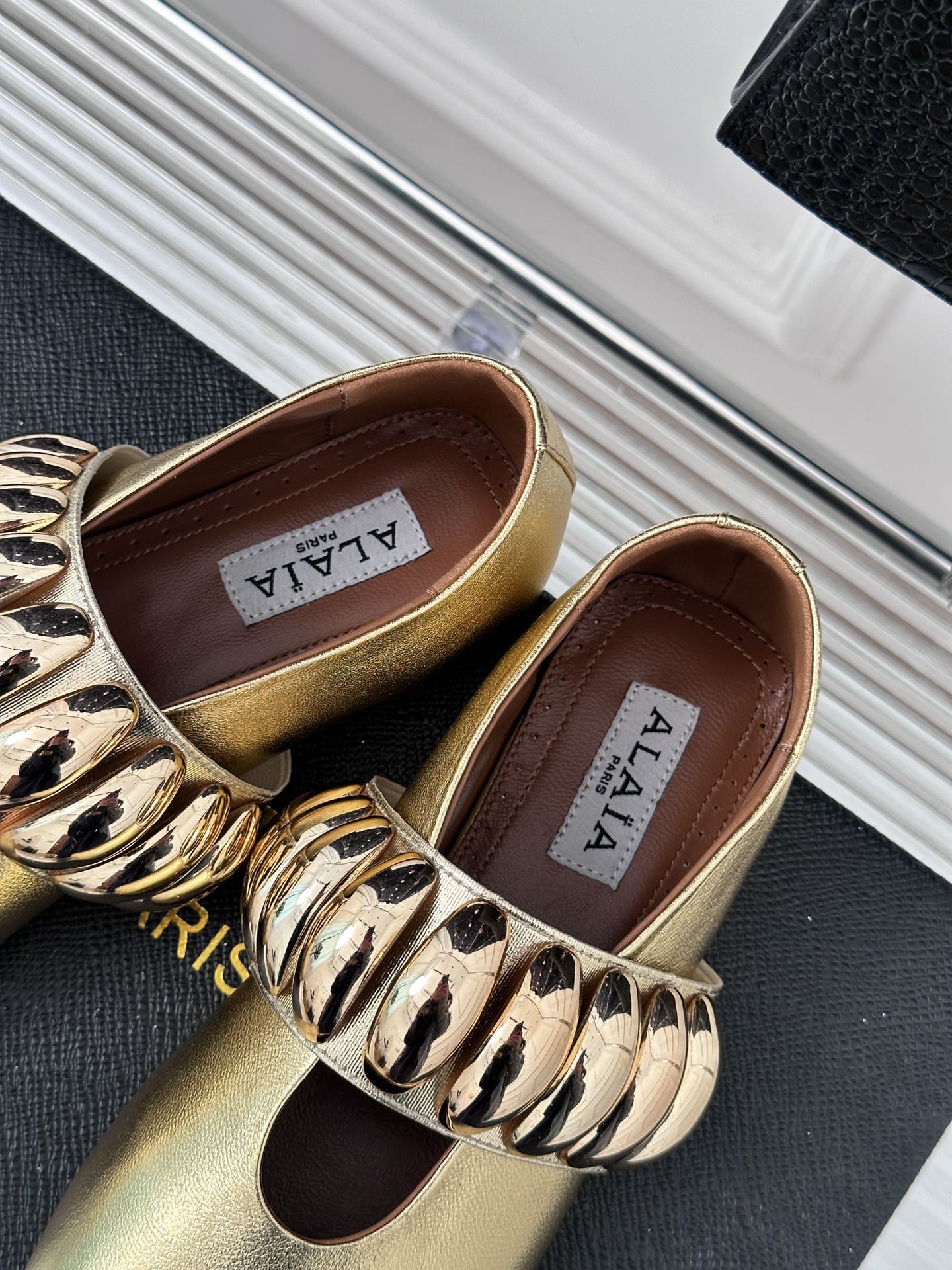 Alaia 25 Mary Jane Jewel Ballet Flats Gold Calfskin 293245