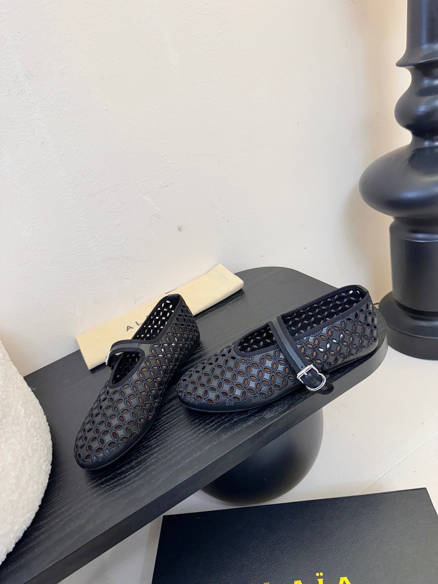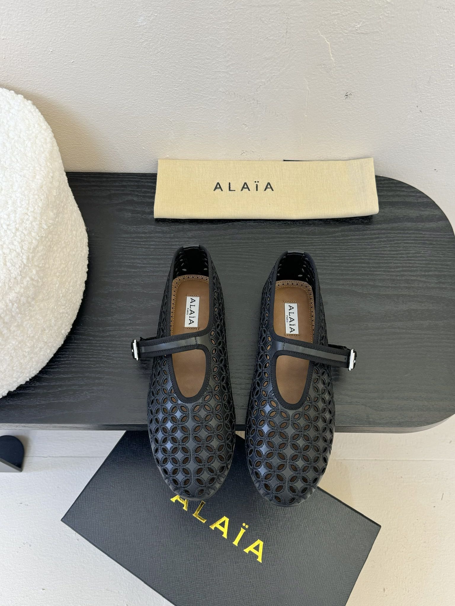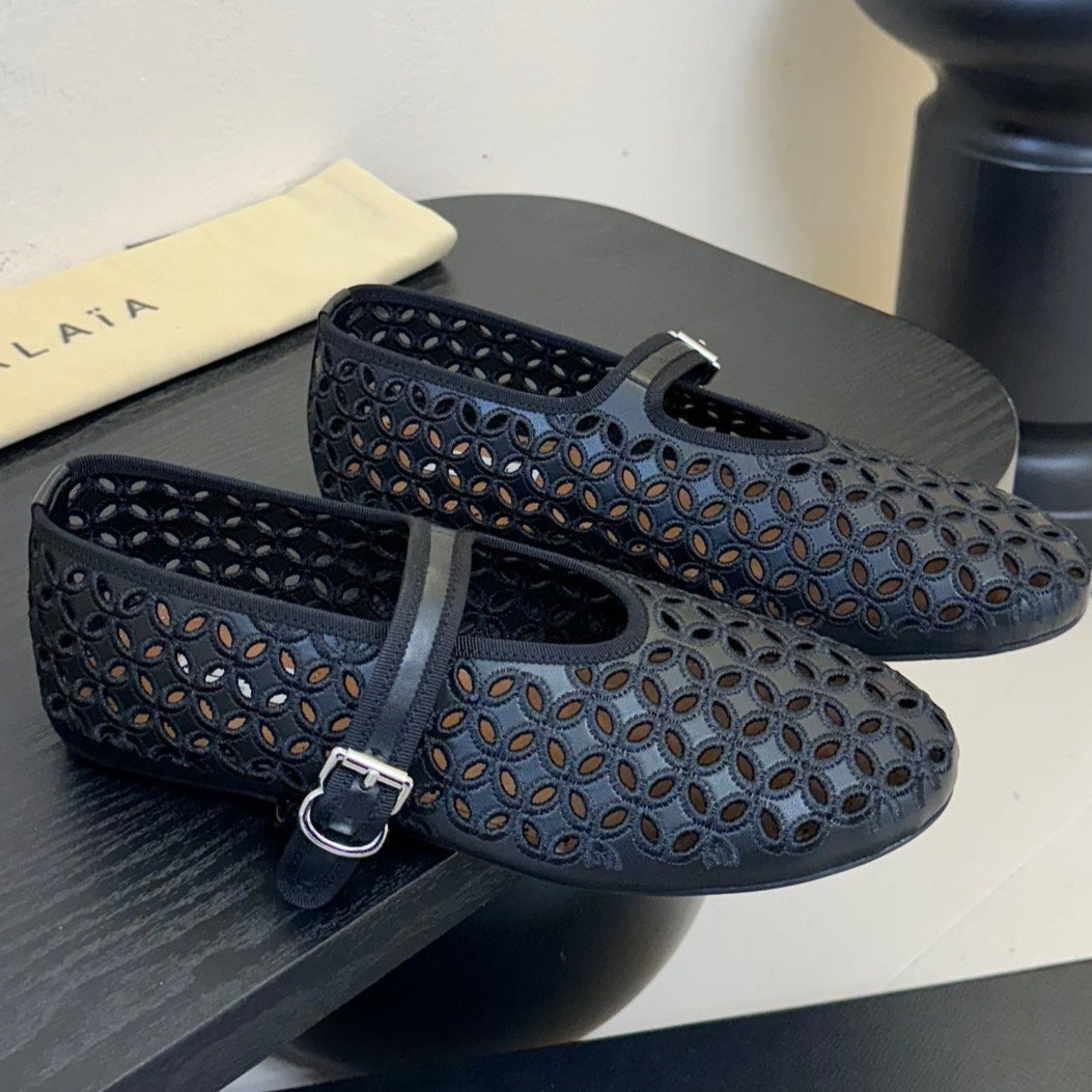 Alaia 25 Mary Jane Mesh Ballet Flats Black Calfskin 297034