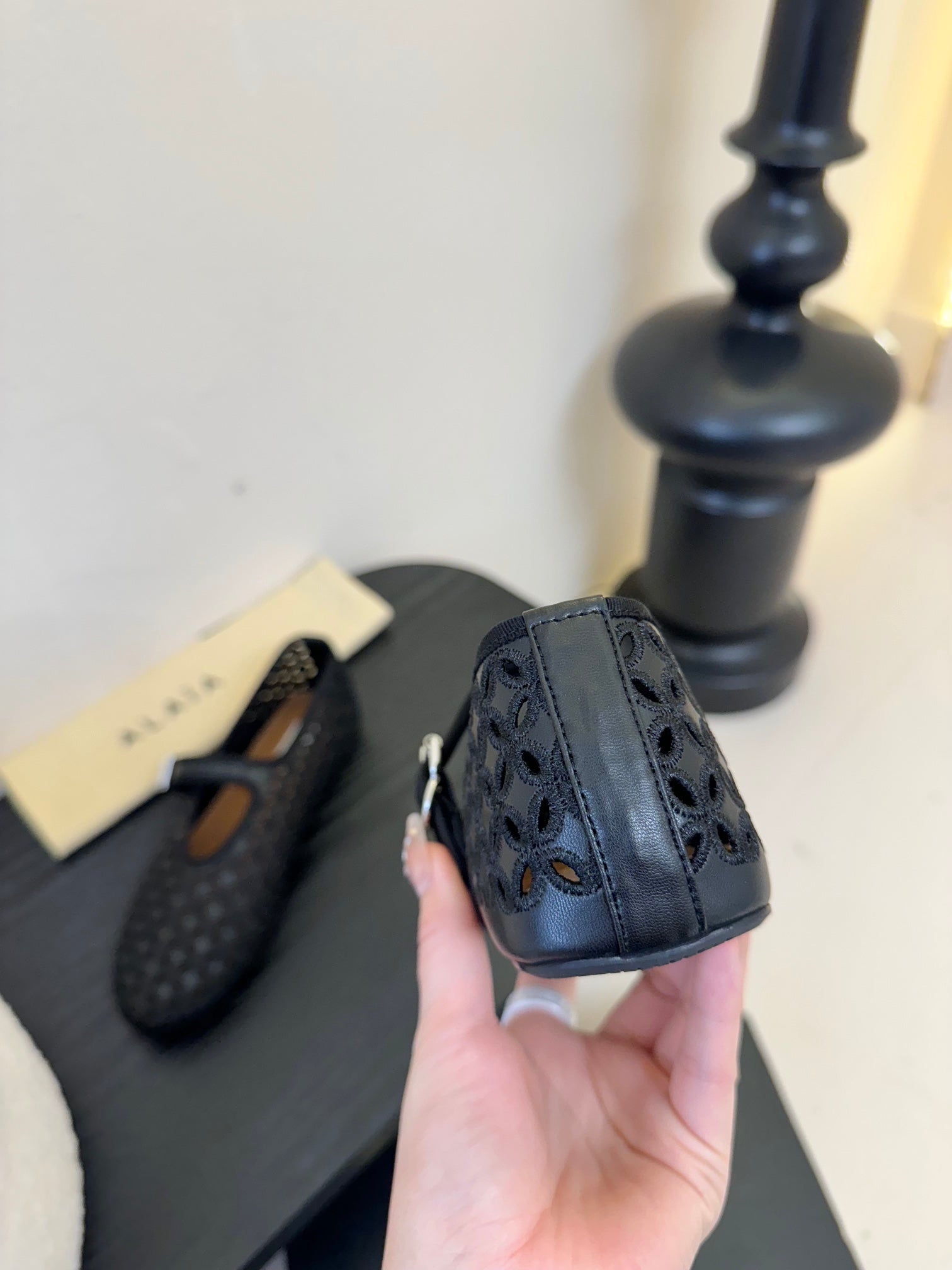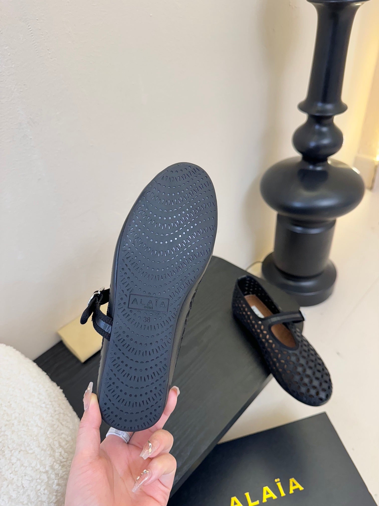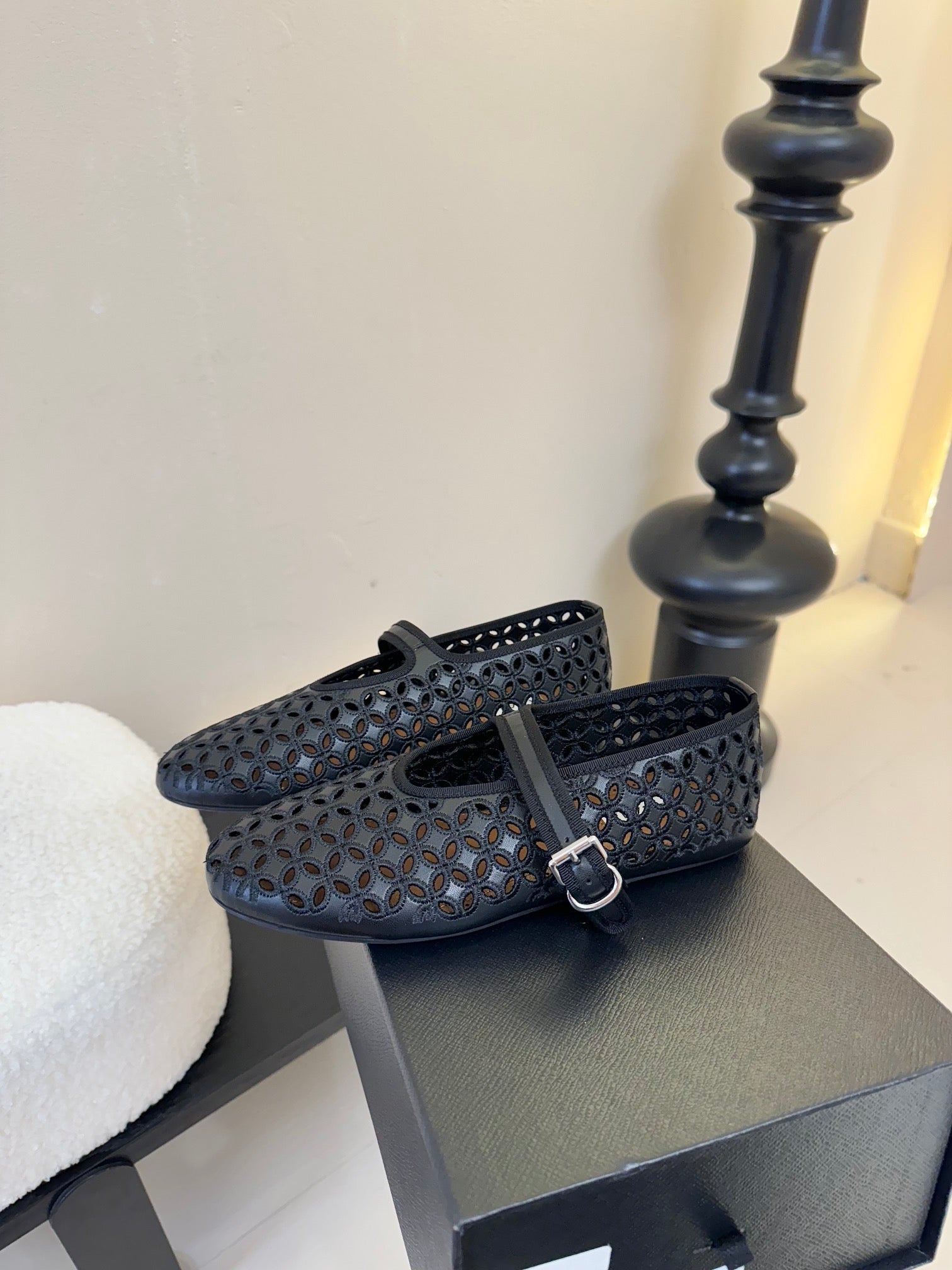 Alaia 25 Mary Jane Mesh Ballet Flats Black Calfskin 297034
