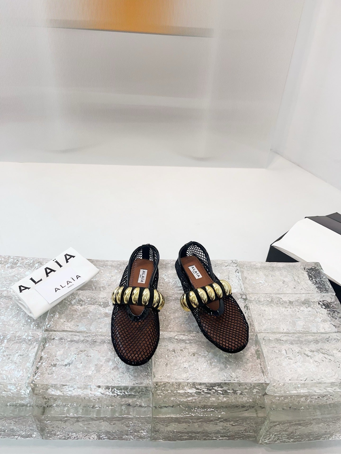 Alaia 25 Mary Jane Mesh Ballet Flats Black Gold Calfskin