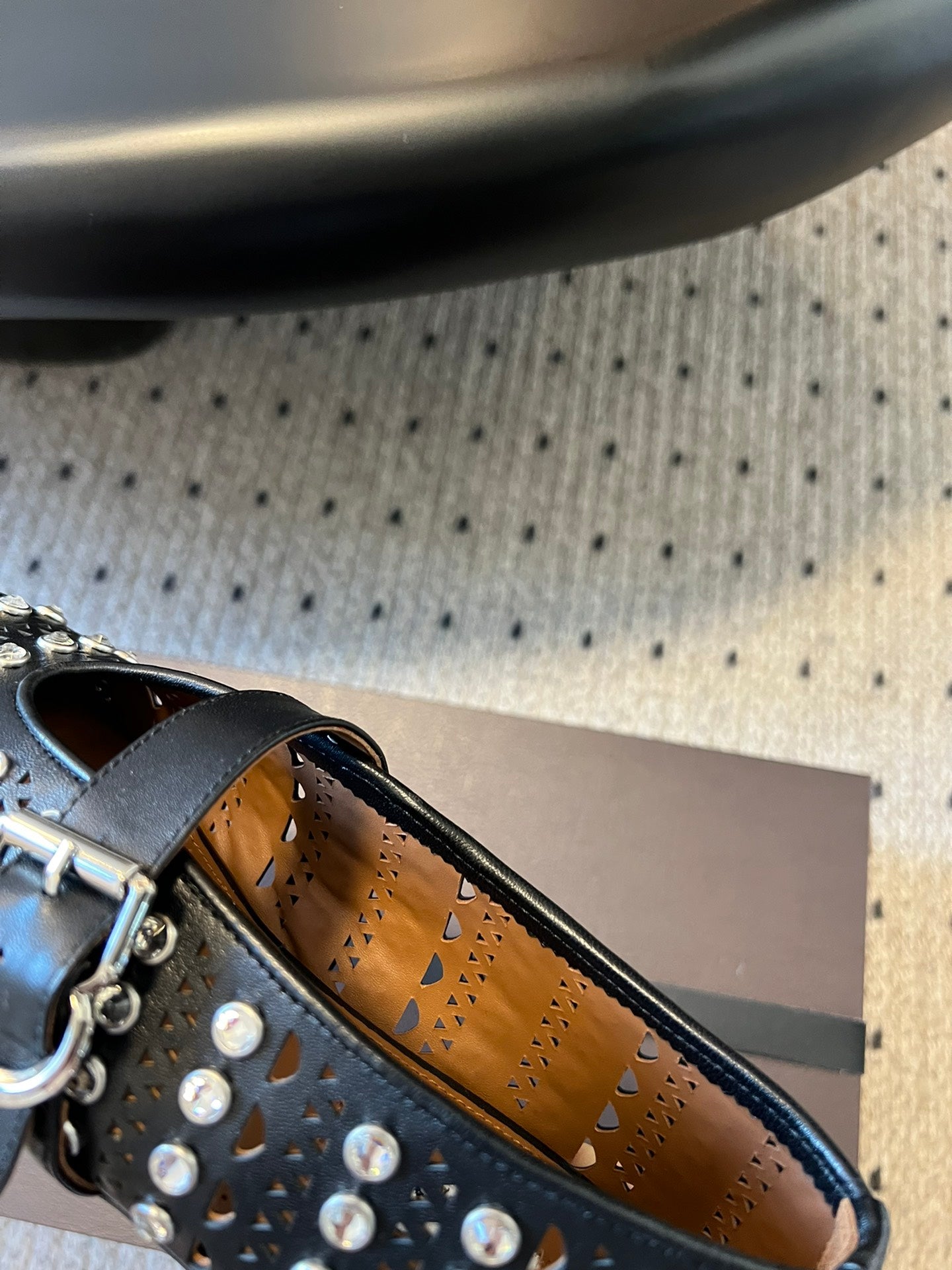 Alaia 25 Vienne With Strass Ballet Flats Black Lambskin 303722