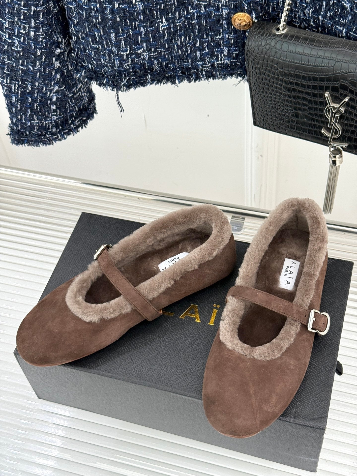Alaia 25WF Mary Jane chocolate brown suede wool 472224