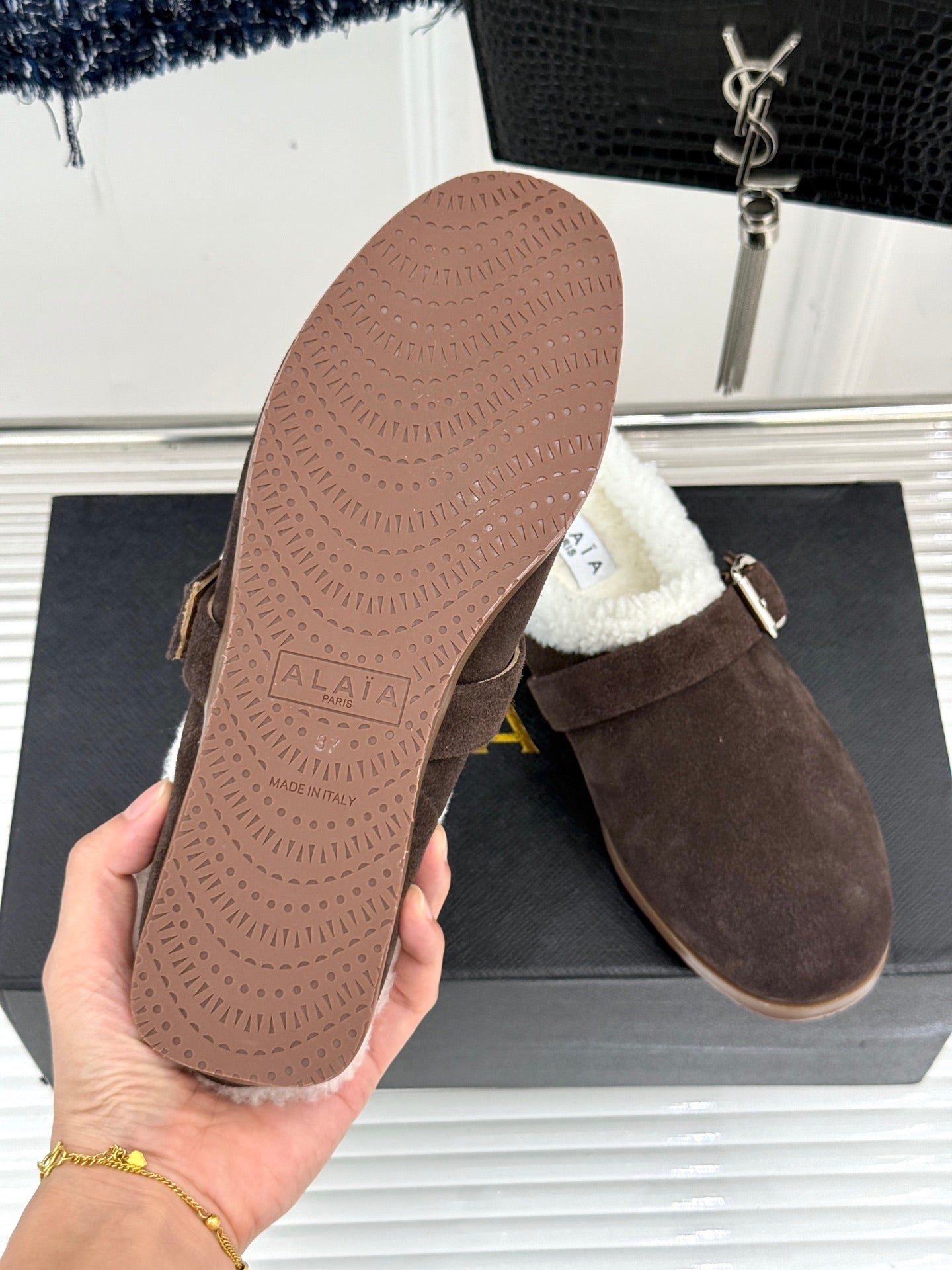 Alaia 25WF slippers belt buckle chocolate brown suede wool 472231