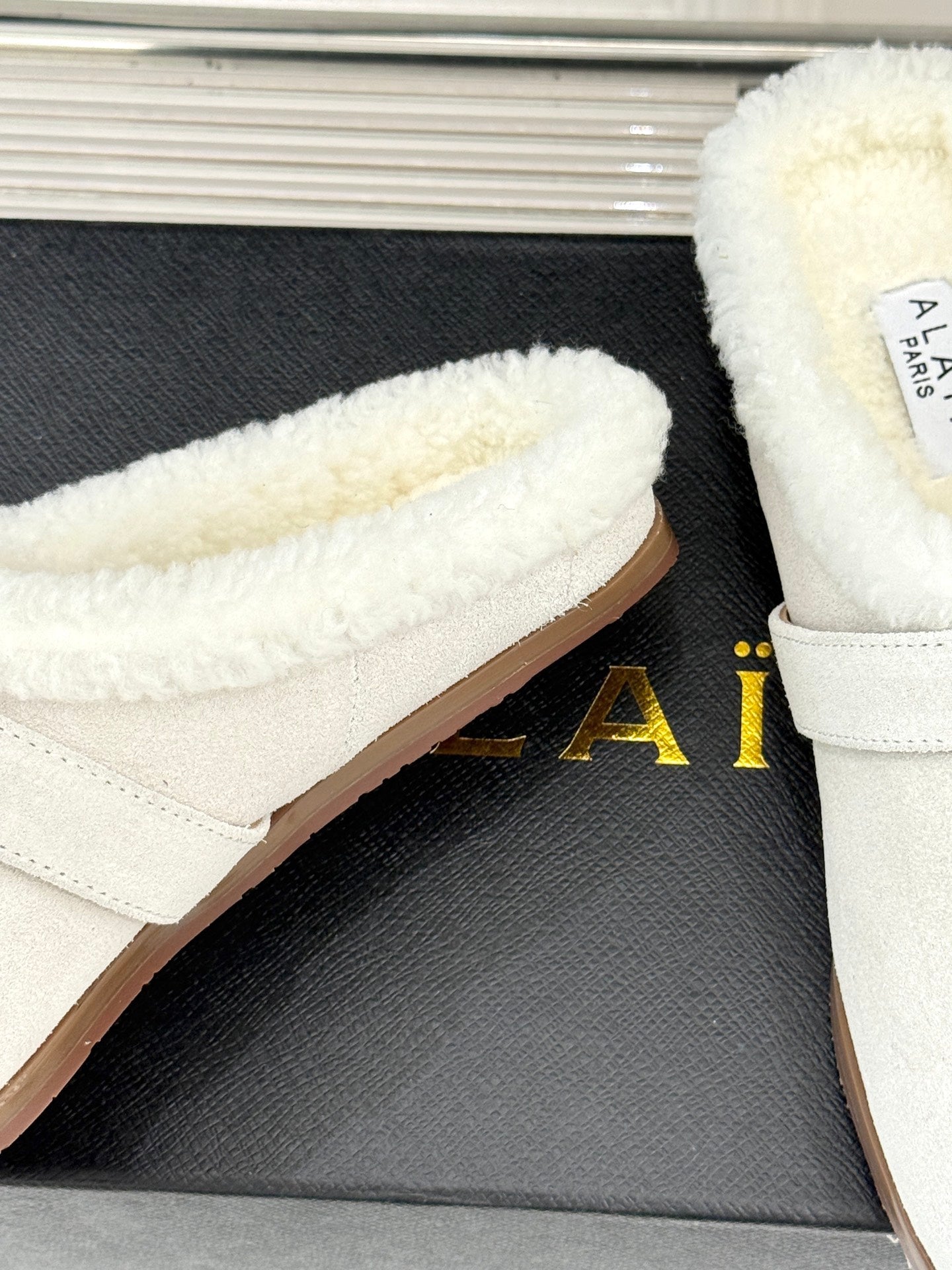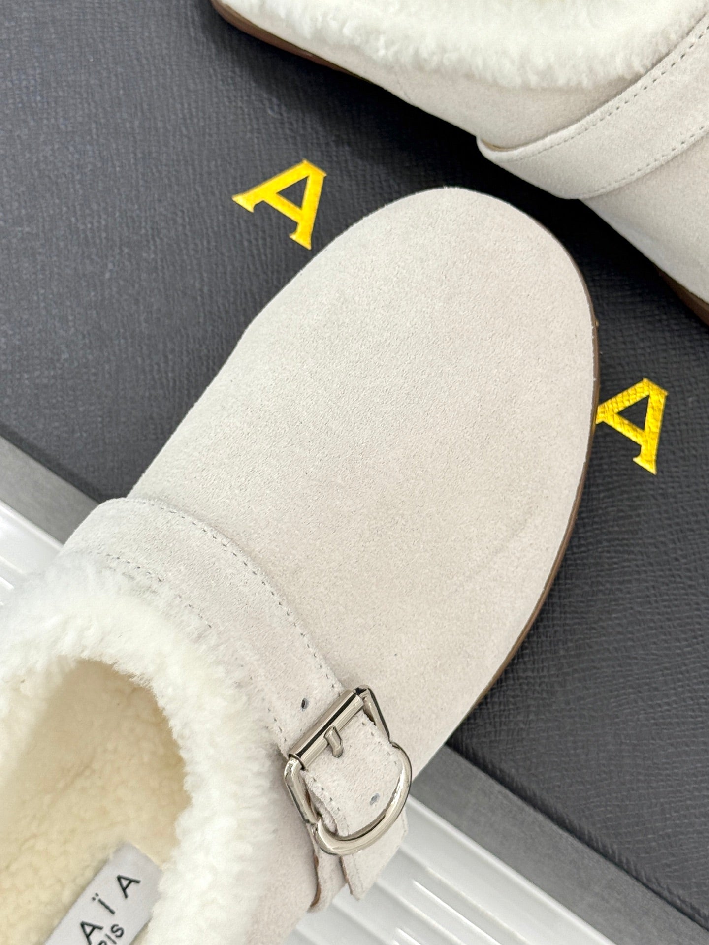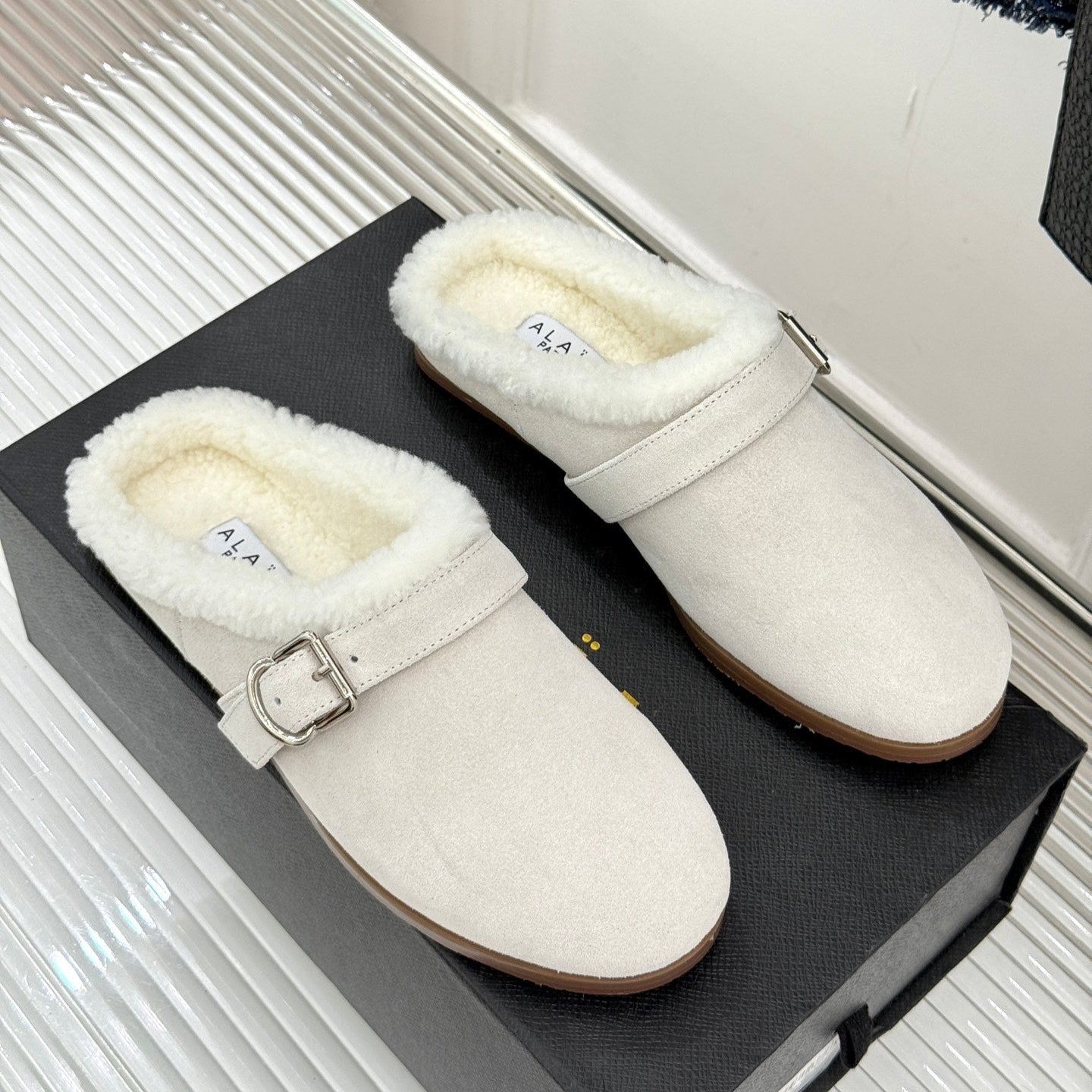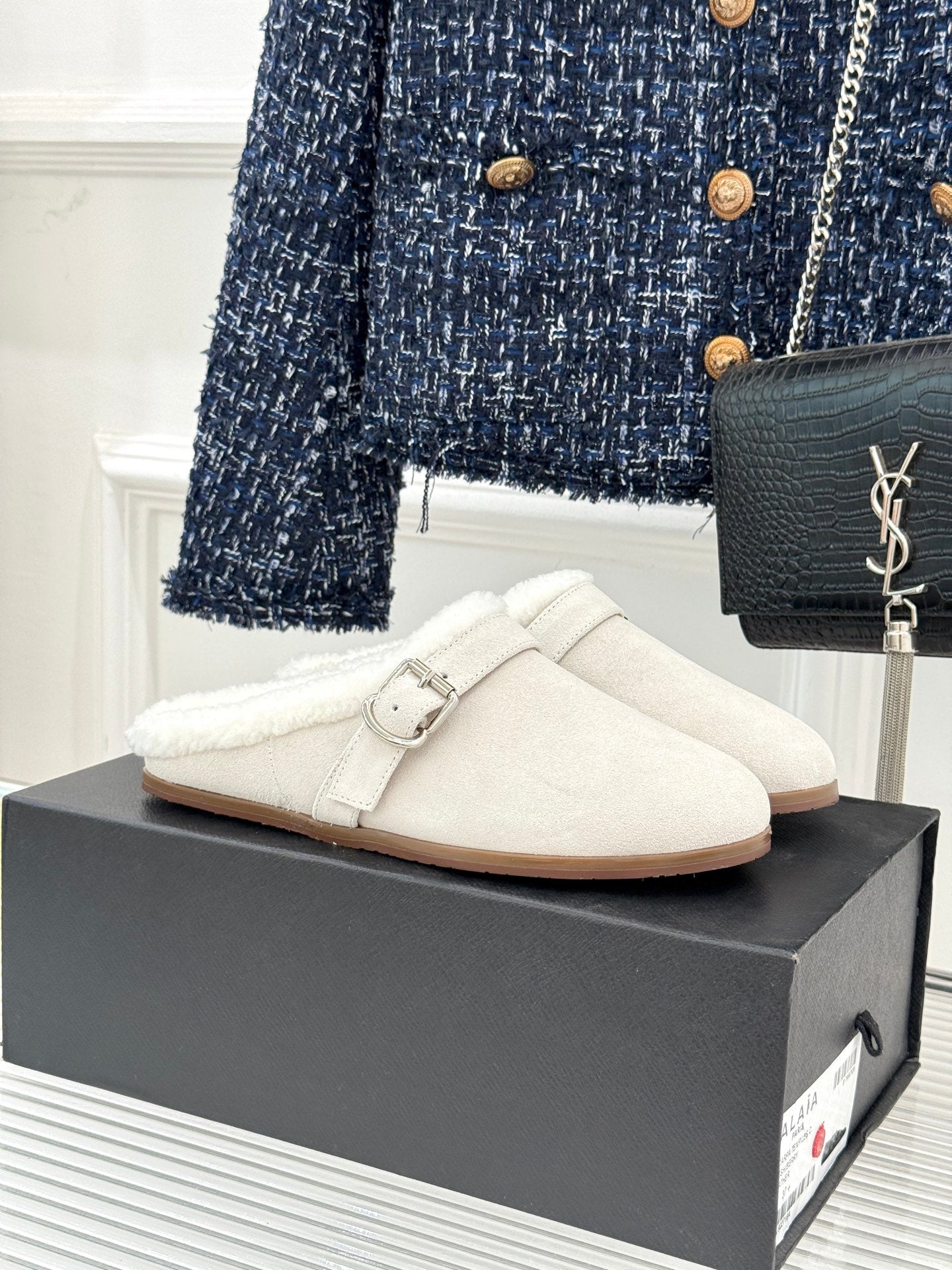 Alaia 25WF slippers belt buckle white suede wool 472228
