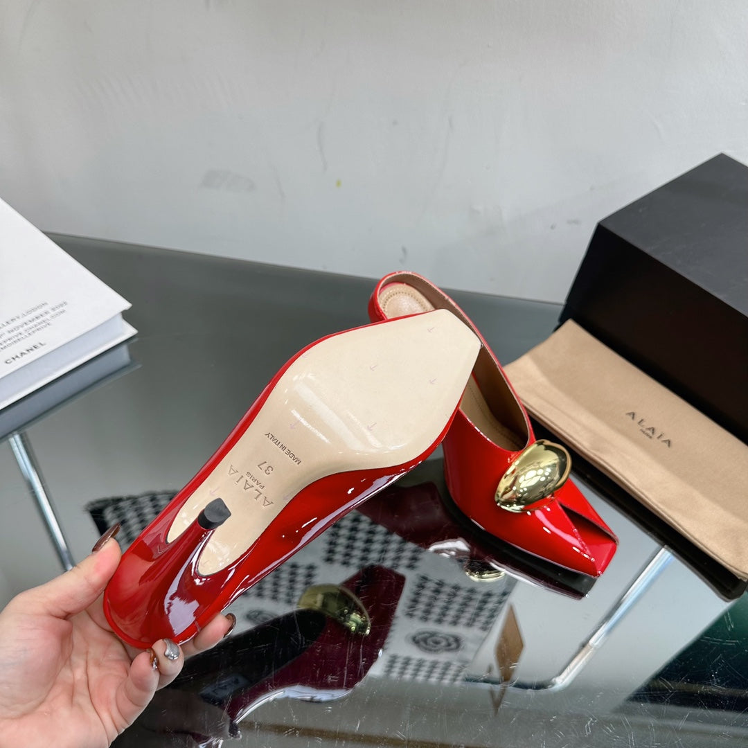 ALAIA AZZEDINE HIGH HEELS IN CHERRY RED CALFSKIN WITH GOLD HARDWARE