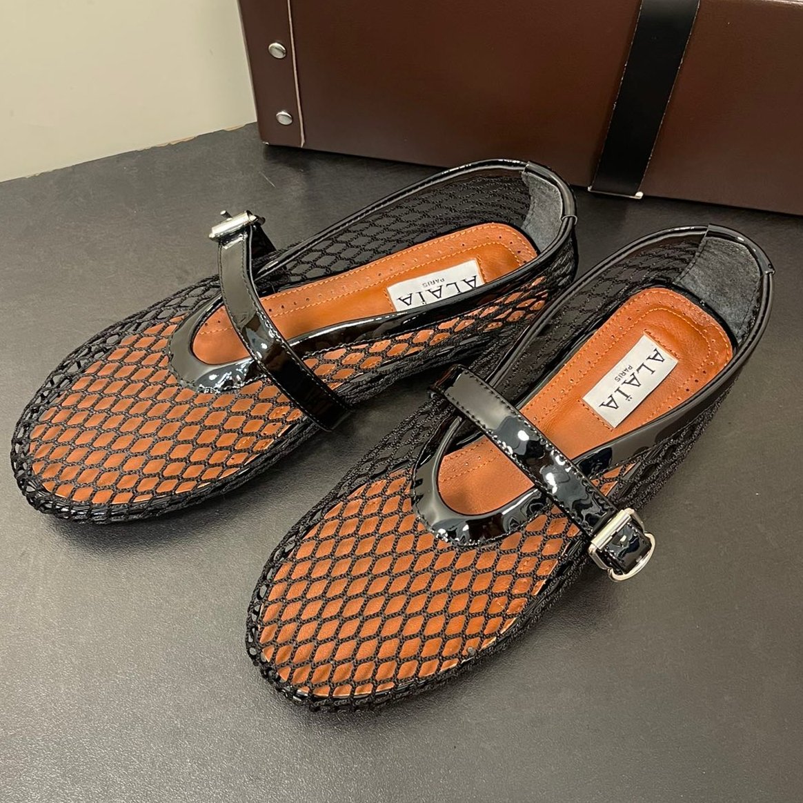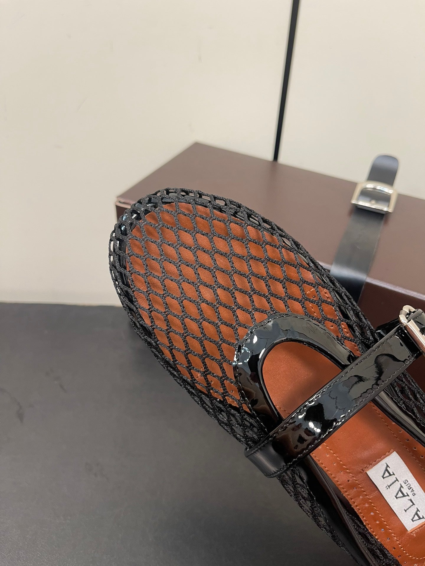 ALAIA BALLET FLATS IN BLACK MESH FISHNET