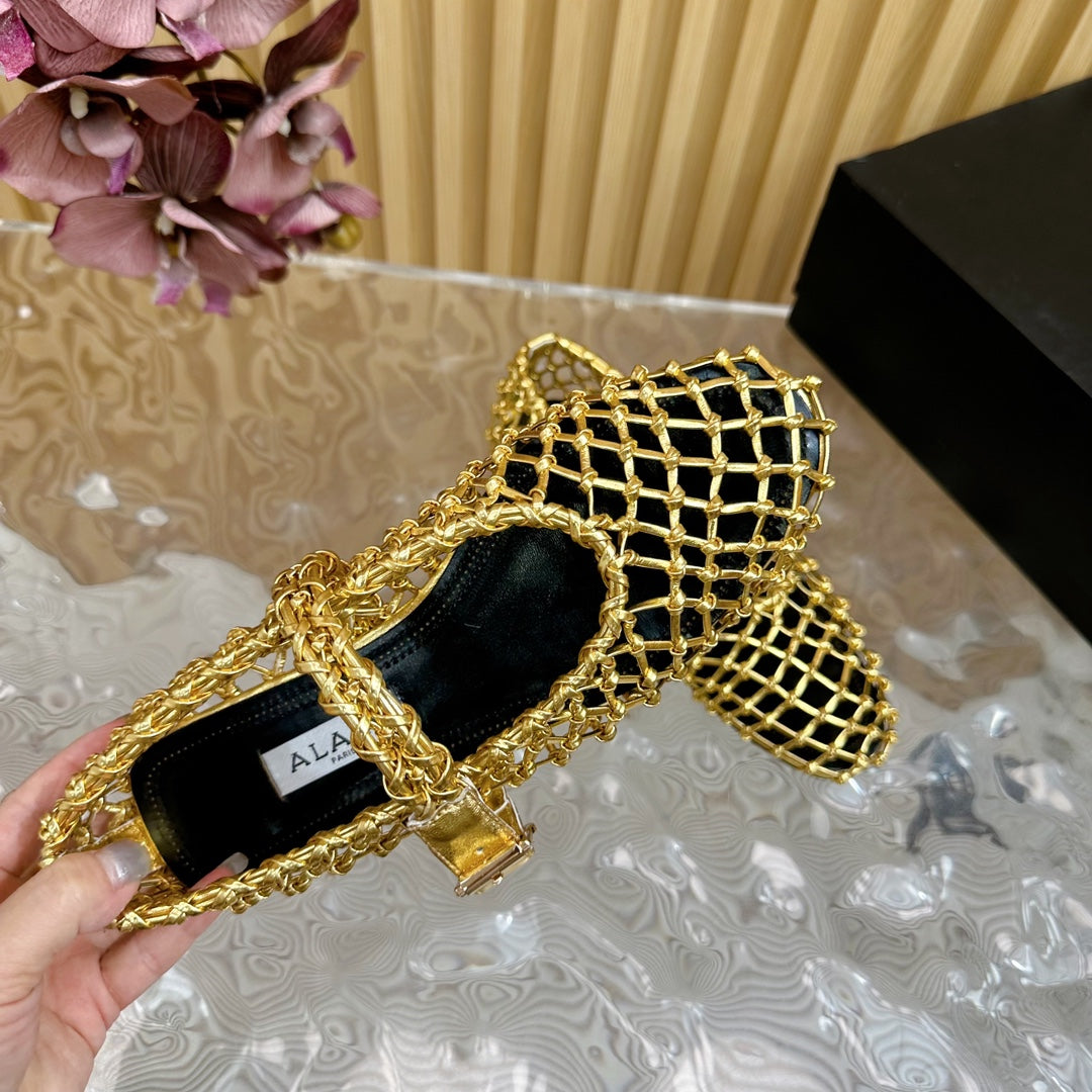 Alaia Ballet Flats In Gold Woven Cowhide 102288