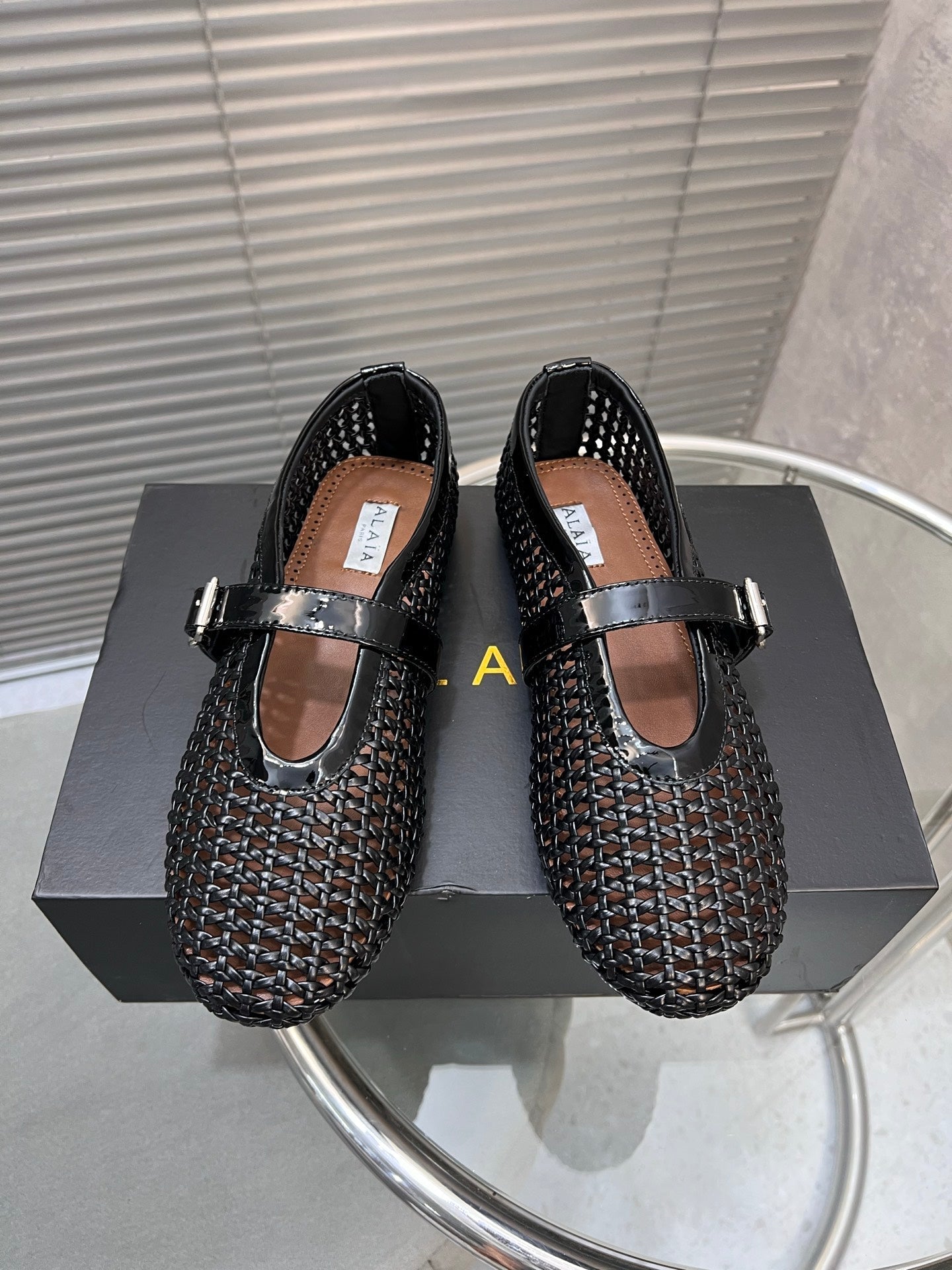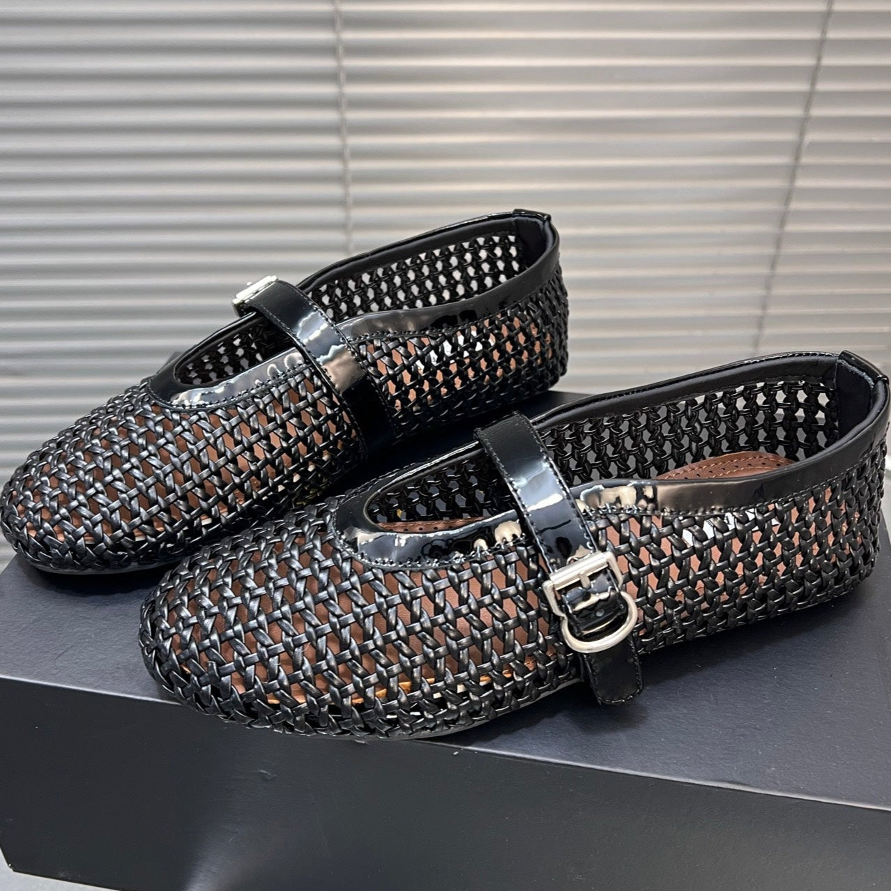 Alaia Braided Hollow Ballet Flats Black Cowhide 300041